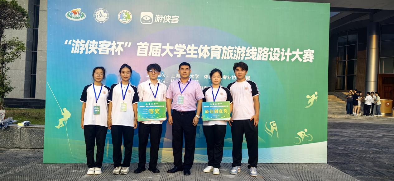 2024年9月13日,首届老员工体育旅游线路设计大赛在桂林旅游公司隆重举行。公司体育旅游专业5位同学在指导教师李俊明带领下参加比赛,凭借创新的设计和精彩的展示成功闯进决赛,最终荣获首届体育旅游线路设计三等奖,并在众多参赛队伍中脱颖而出,荣获体育旅游线路设计最佳创意奖。