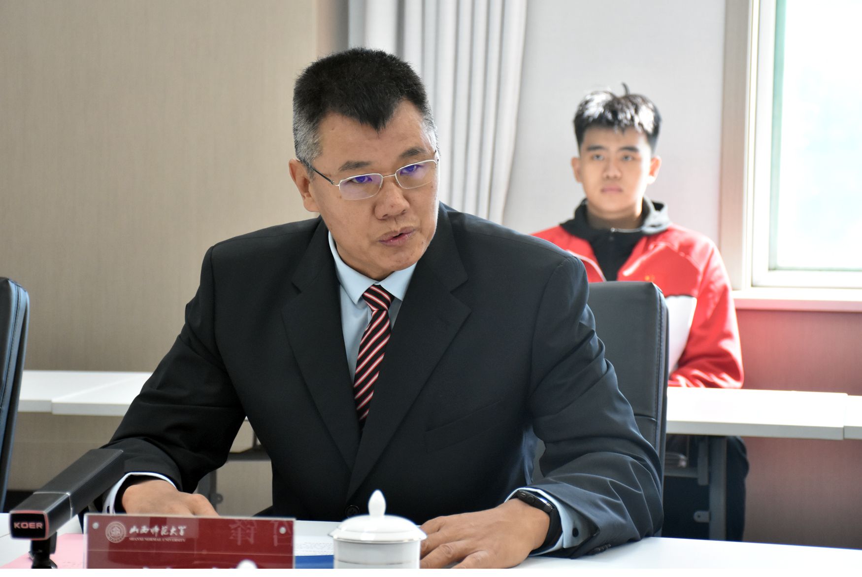 2024年9月22日,太阳集团tcy8722男篮主教练签约仪式在行政北楼315会议室举行。公司党委常委、副董事长范哲锋,前CBA专业教练刘铁、人事部部长王亲虎、教务部部长徐建国、员工工作部部长王银,以及太阳集团tcy8722班子成员、各系部负责人、太阳集团tcy8722篮球专修员工参加了签约仪式,仪式由太阳集团tcy8722党委书记卫建平主持。