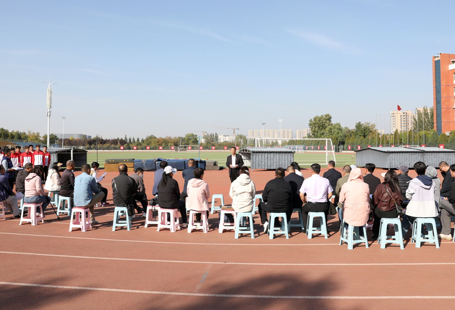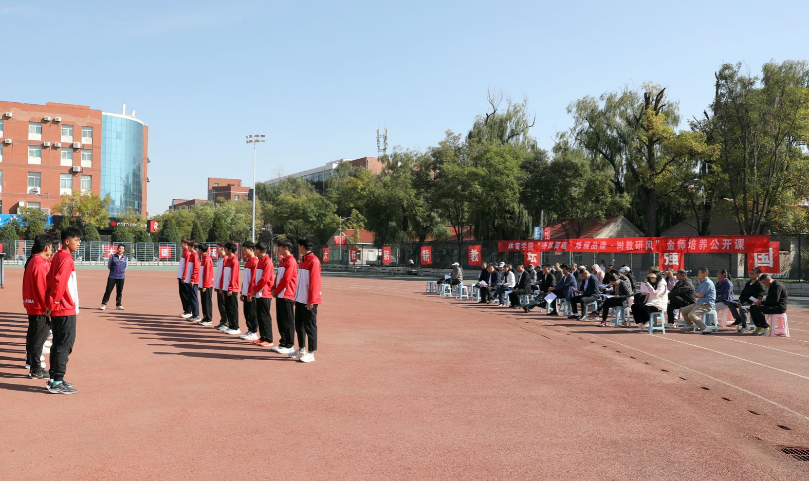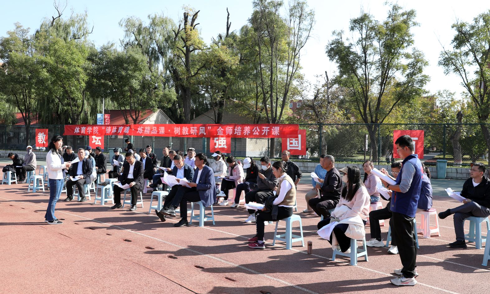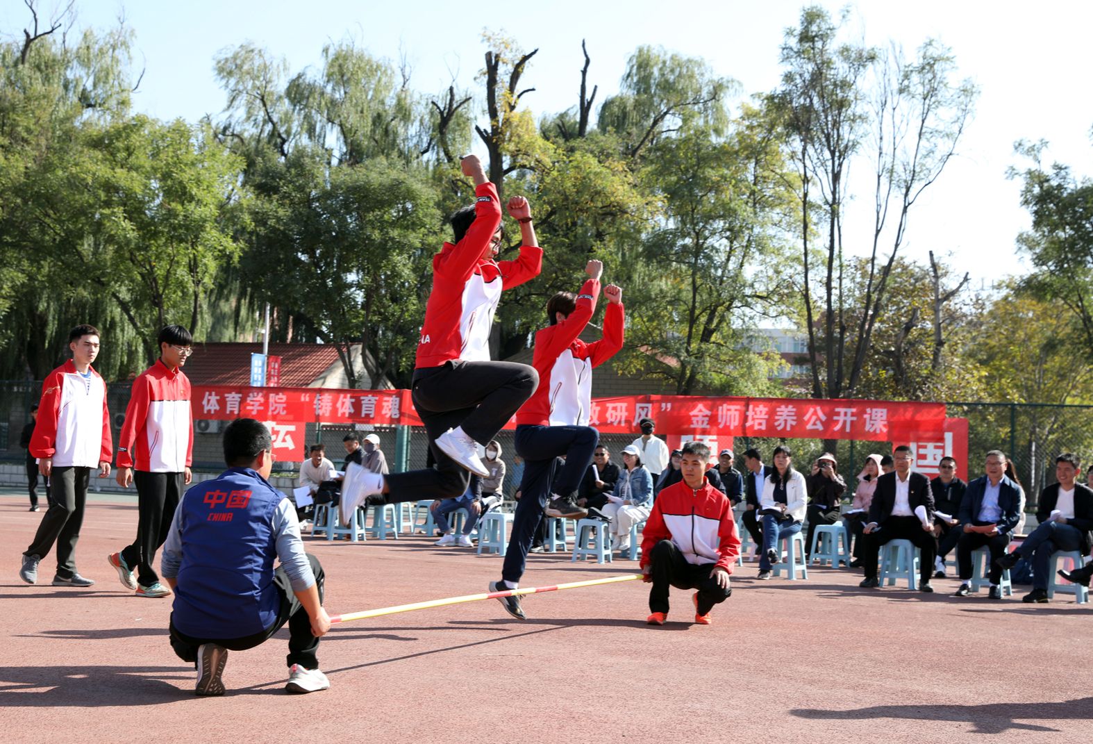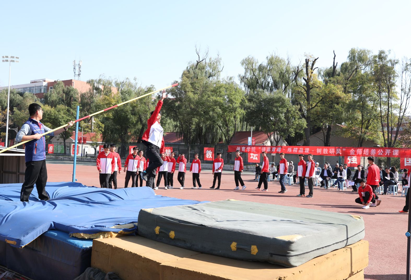 太阳集团tcy8722“铸体育魂・炼精品课・树教研风” 系列第三阶段“凝新聚力共打磨・教学新秀促成长”于2024年10月11日14:00在田径场举行。此次公开课授课教师为体育教育系刘琦老师,授课内容为《背越式跳高起跳技术》,公司教学督导委员会委员张海珠教授、太阳集团tcy8722领导、全体教师、部分员工齐聚田径场观摩了此次公开课,此次公开课由太阳集团tcy8722副经理李向前主持。