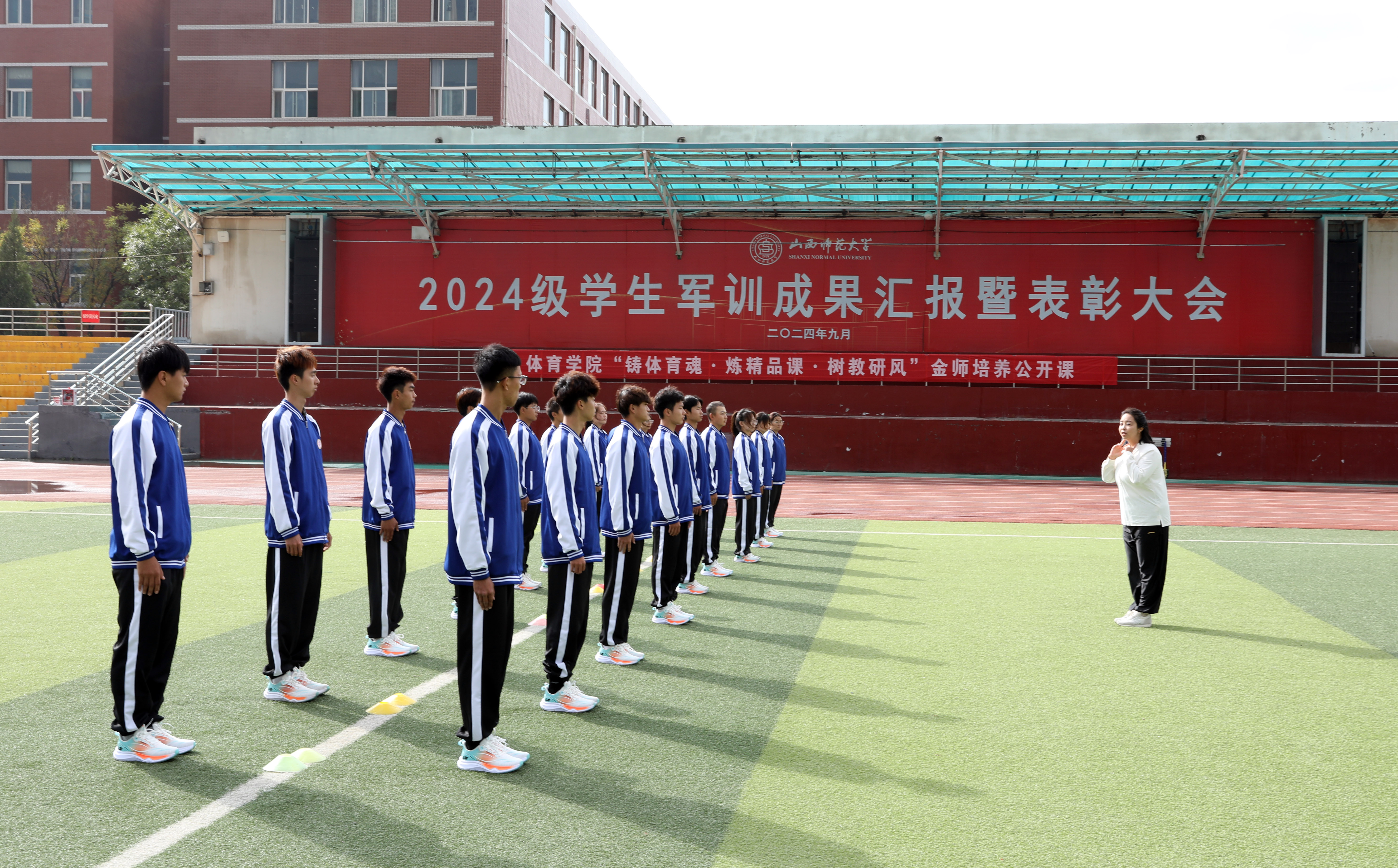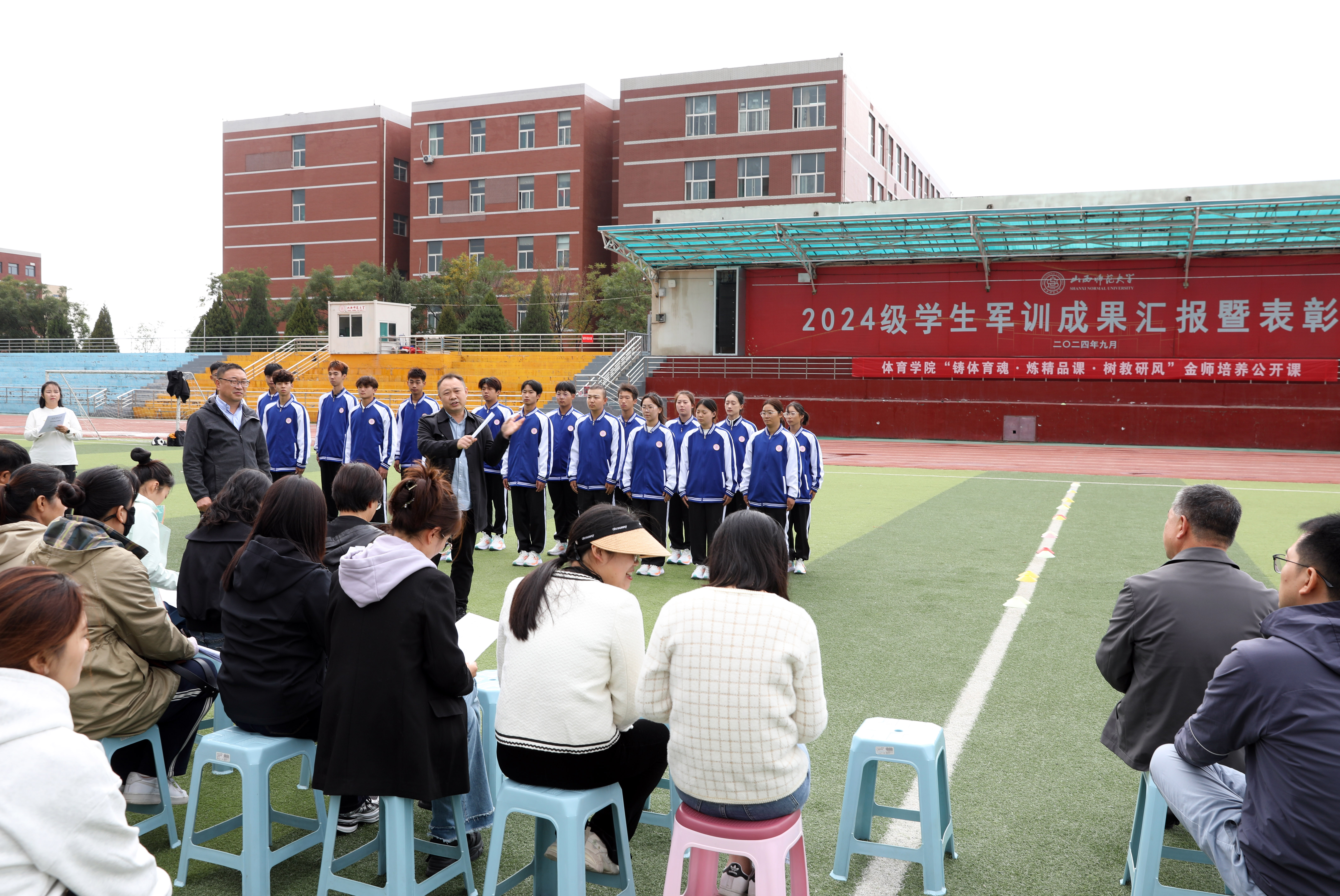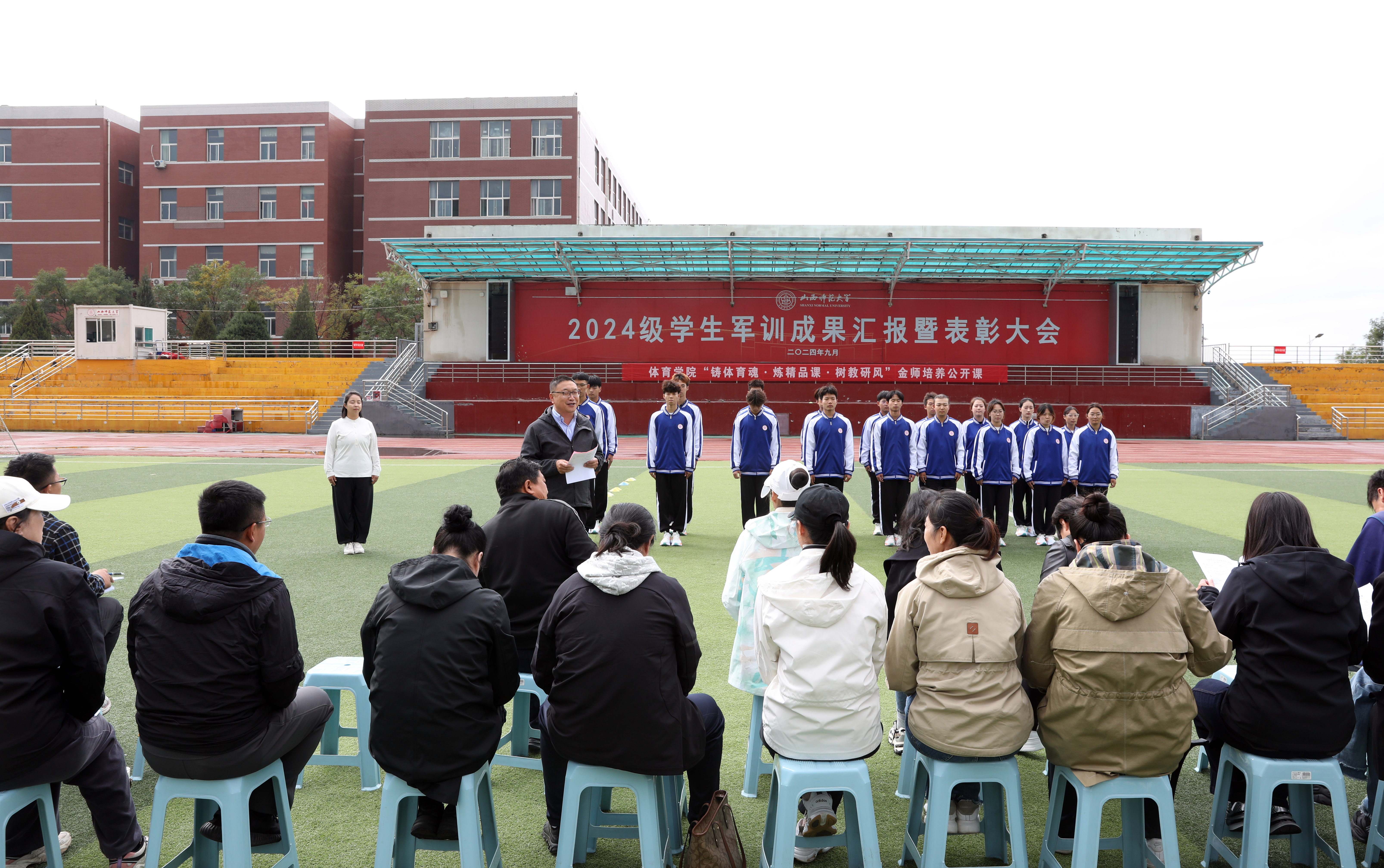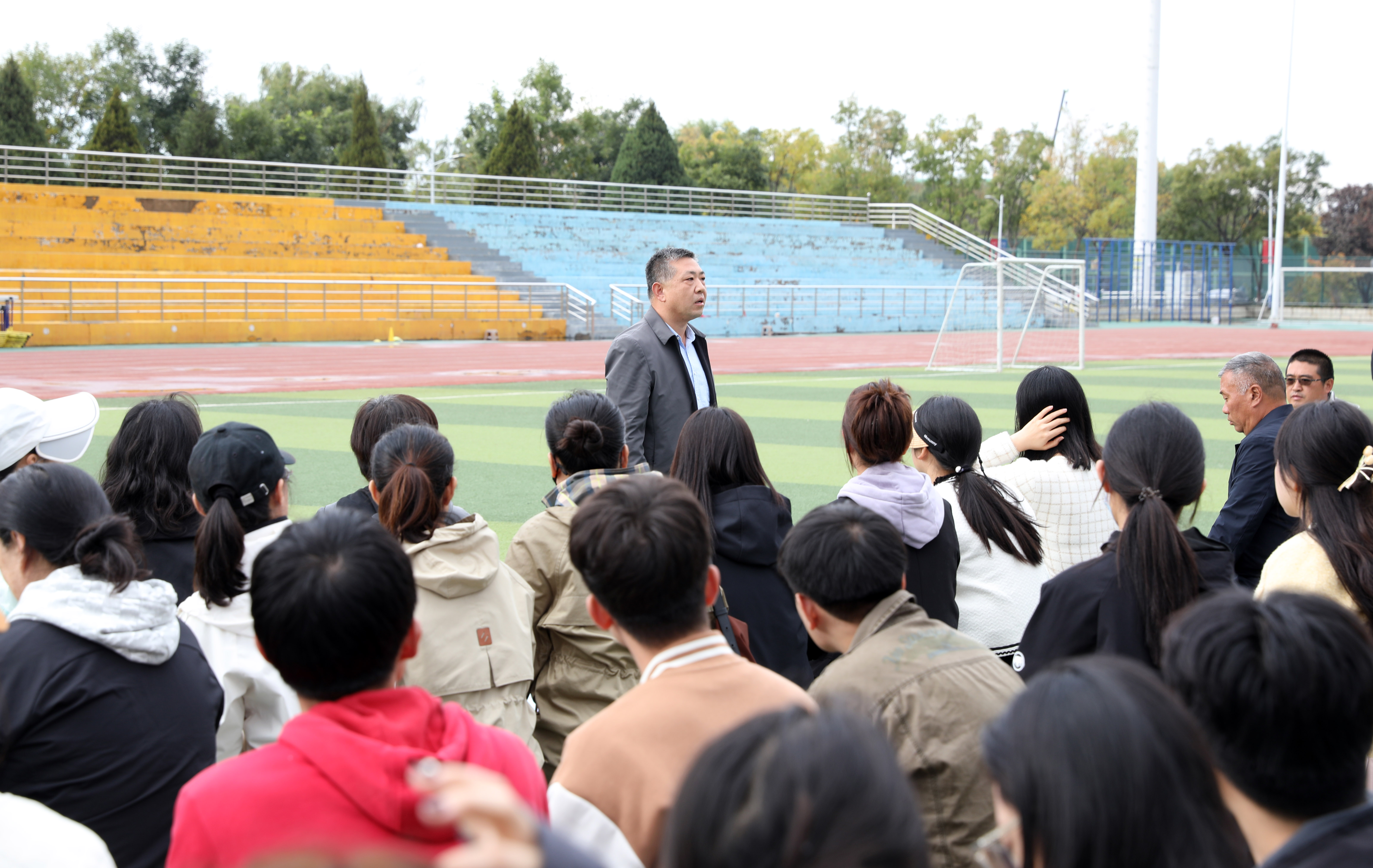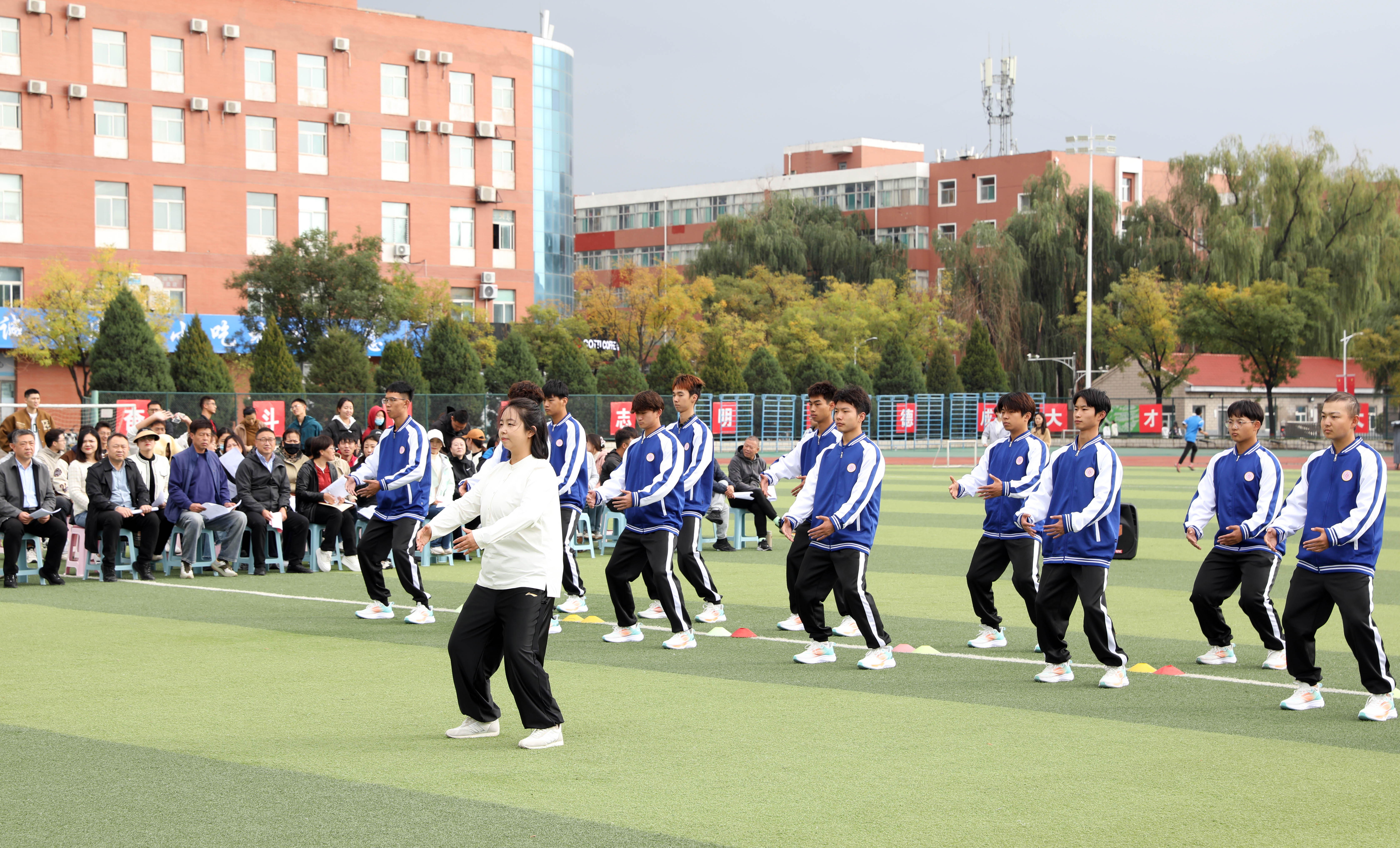 2024年10月18日14:00,太阳集团tcy8722“铸体育魂・炼精品课・树教研风” 系列第三阶段“凝新聚力共打磨・教学新秀促成长”第二次展示活动在南区田径场进行。本次公开课授课教师为公司武术与民族传统体育系教师宿凤玲博士,授课内容为《健身气功》。公司教学督导委员会委员张建强教授、太阳集团tcy8722领导、全体教师、部分员工齐聚田径场观摩了此次公开课,公开课由太阳集团tcy8722副经理李向前主持。