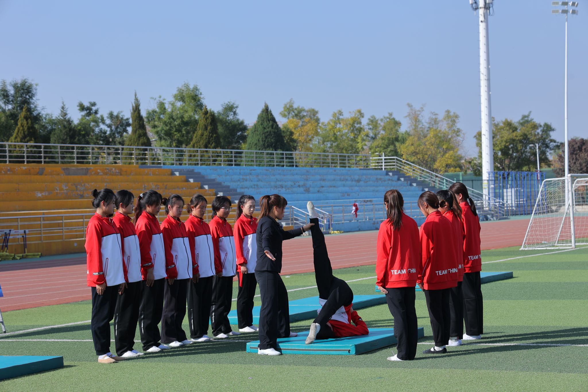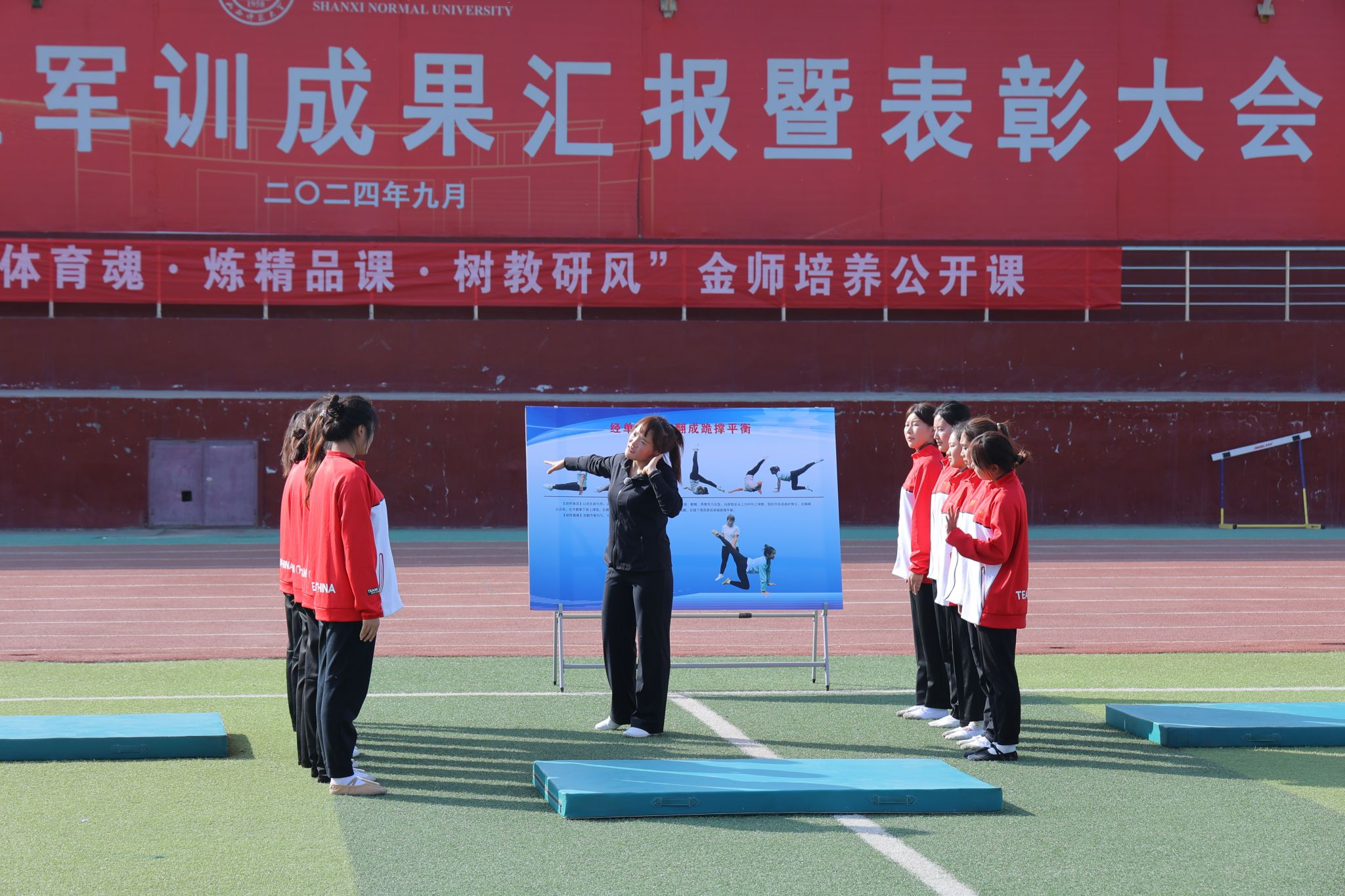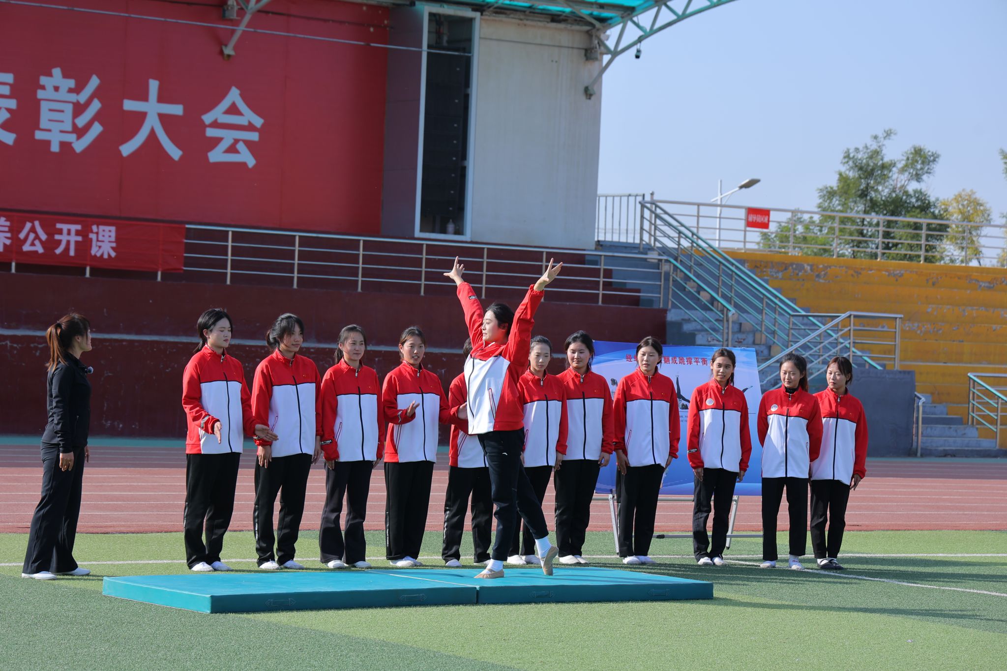 2024年10月25日14:00,太阳集团tcy8722“铸体育魂・炼精品课・树教研风” 系列第三阶段“凝新聚力共打磨・教学新秀促成长”第三次展示活动在南区田径场展开。本次公开课授课教师为公司运动训练系卫玲玲老师,授课内容为《体操-经单肩后滚翻成跪撑》。公司教学督导委员会委员张少颖教授作了点评。太阳集团tcy8722领导、全体教师、部分员工齐聚田径场观摩了此次公开课,此次公开课由太阳集团tcy8722副经理李向前主持。
