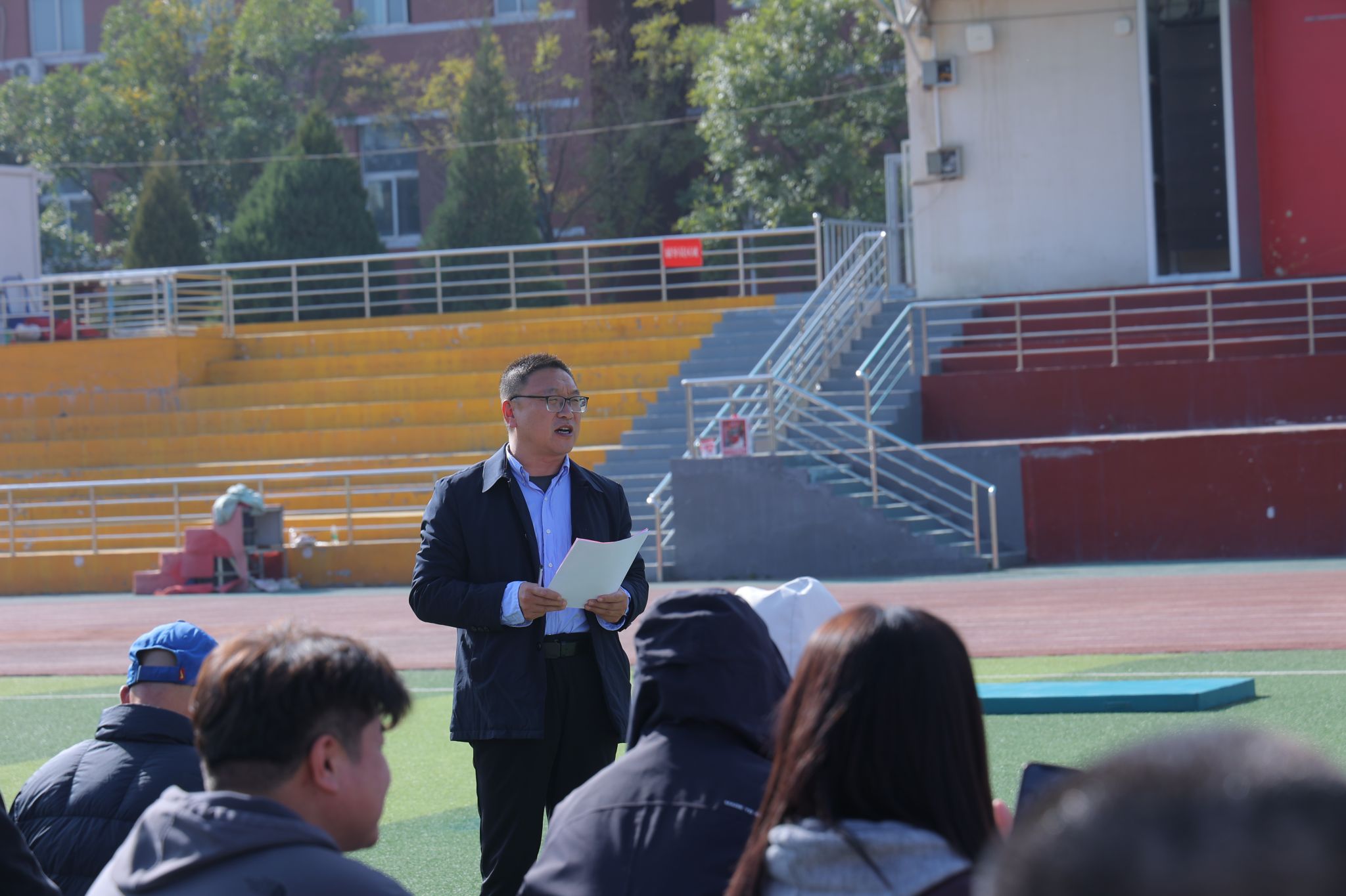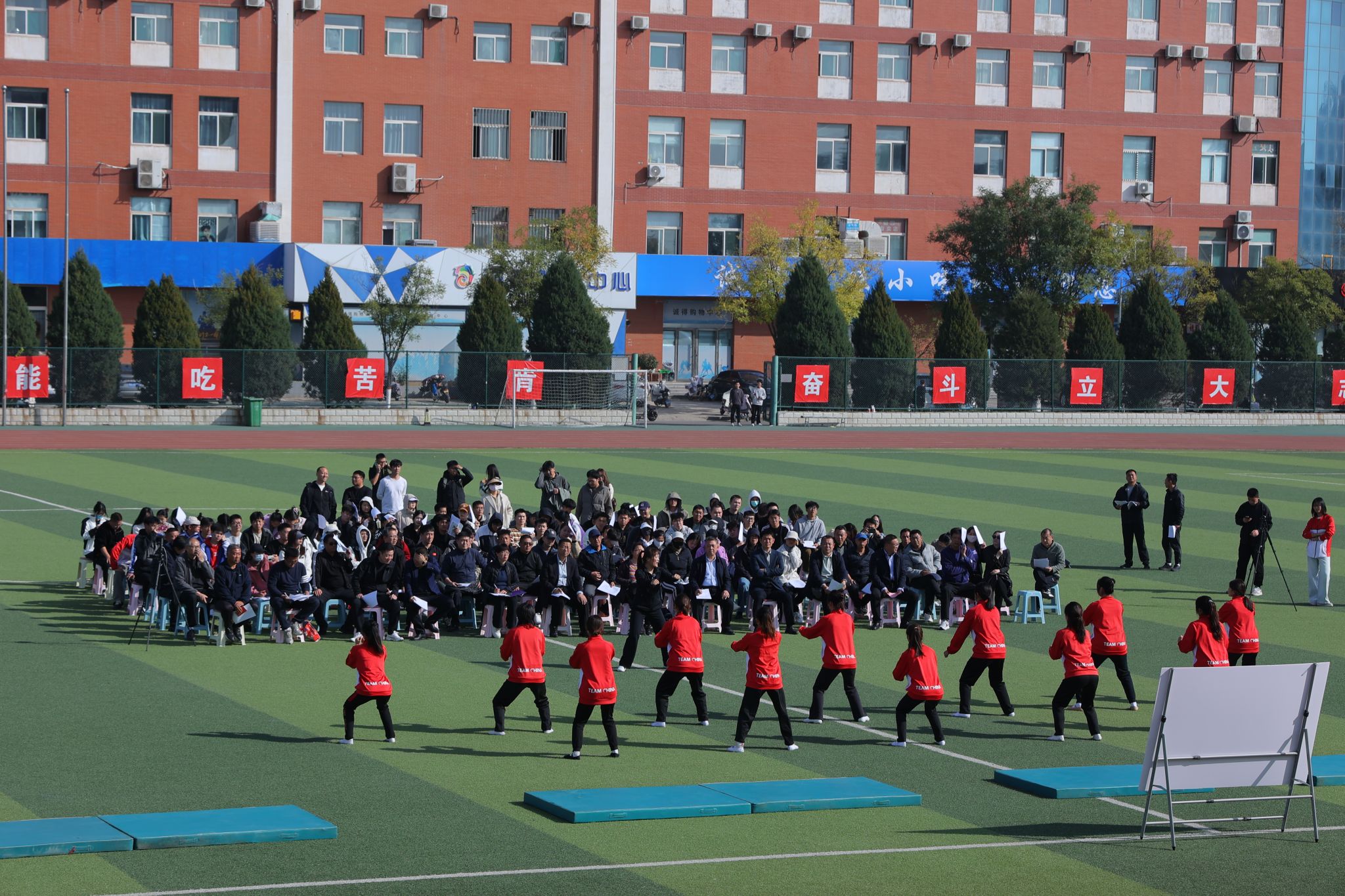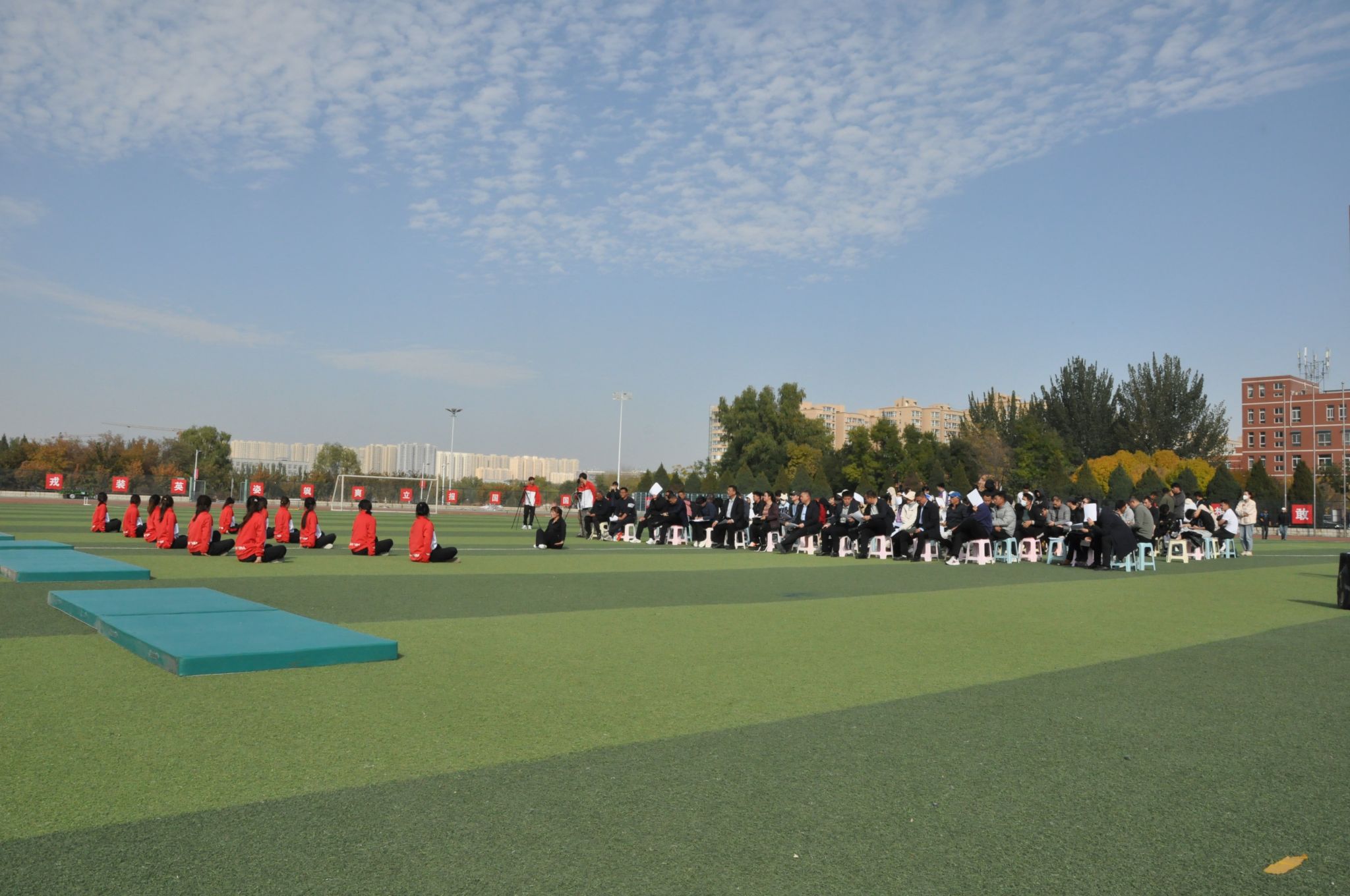2024年10月25日14:00,太阳集团tcy8722“铸体育魂・炼精品课・树教研风” 系列第三阶段“凝新聚力共打磨・教学新秀促成长”第三次展示活动在南区田径场展开。本次公开课授课教师为公司运动训练系卫玲玲老师,授课内容为《体操-经单肩后滚翻成跪撑》。公司教学督导委员会委员张少颖教授作了点评。太阳集团tcy8722领导、全体教师、部分员工齐聚田径场观摩了此次公开课,此次公开课由太阳集团tcy8722副经理李向前主持。