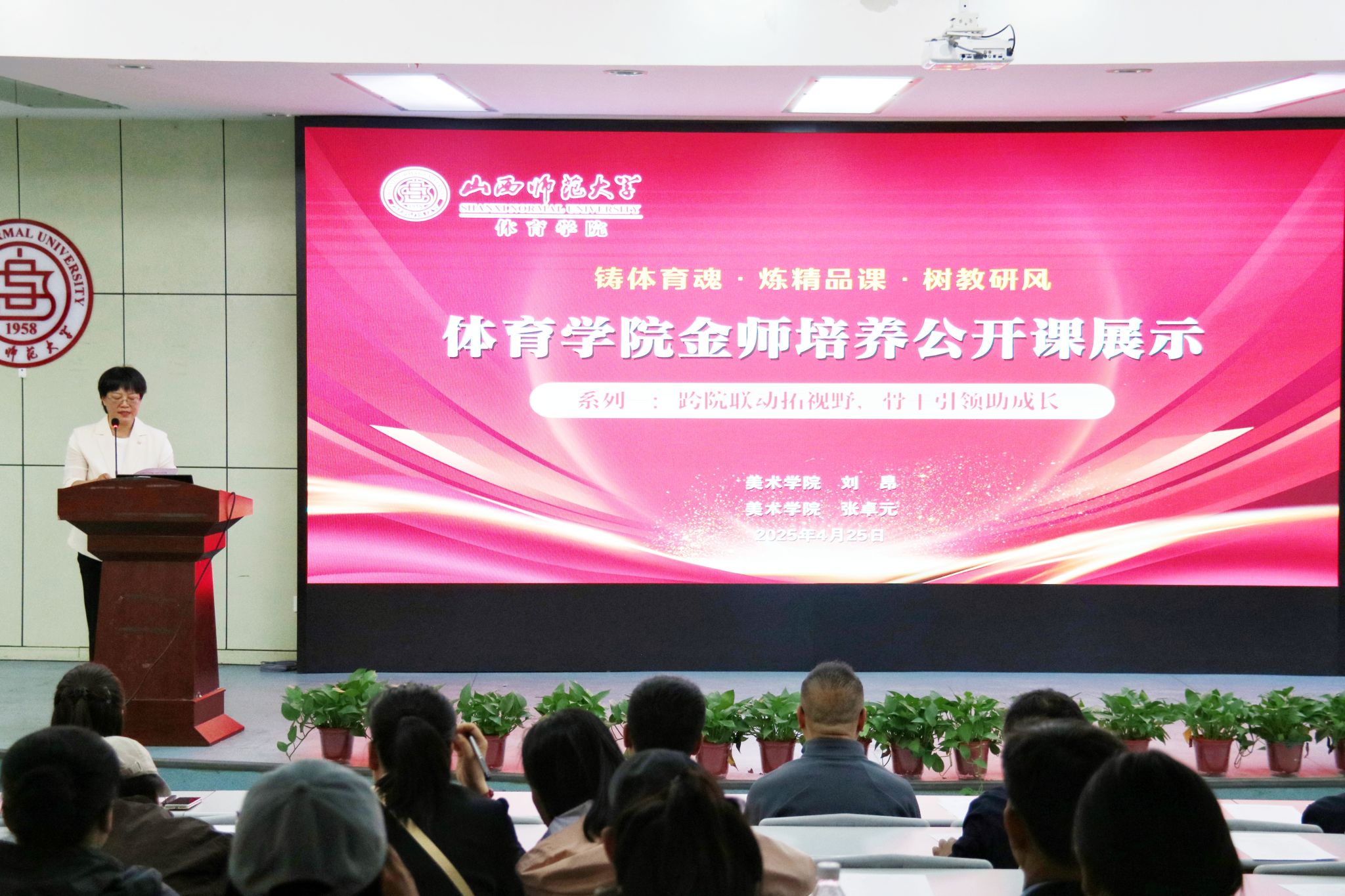 太阳集团tcy8722于2025年4月25日成功举办“铸体育魂·炼精品课·树教研风”金师培养系列公开课第一阶段第三场活动。本次活动以“跨院联动拓视野,骨干引领助成长”为主题,活动地点为校图书馆一层报告厅,活动特邀校教学督导委员会胡青平教授参与指导,并邀请美术公司两位骨干教师——刘昂老师与张卓元老师进行教学展示,通过体美学科深度融合,探索教学创新路径,助力公司公司产品改革再上新台阶。