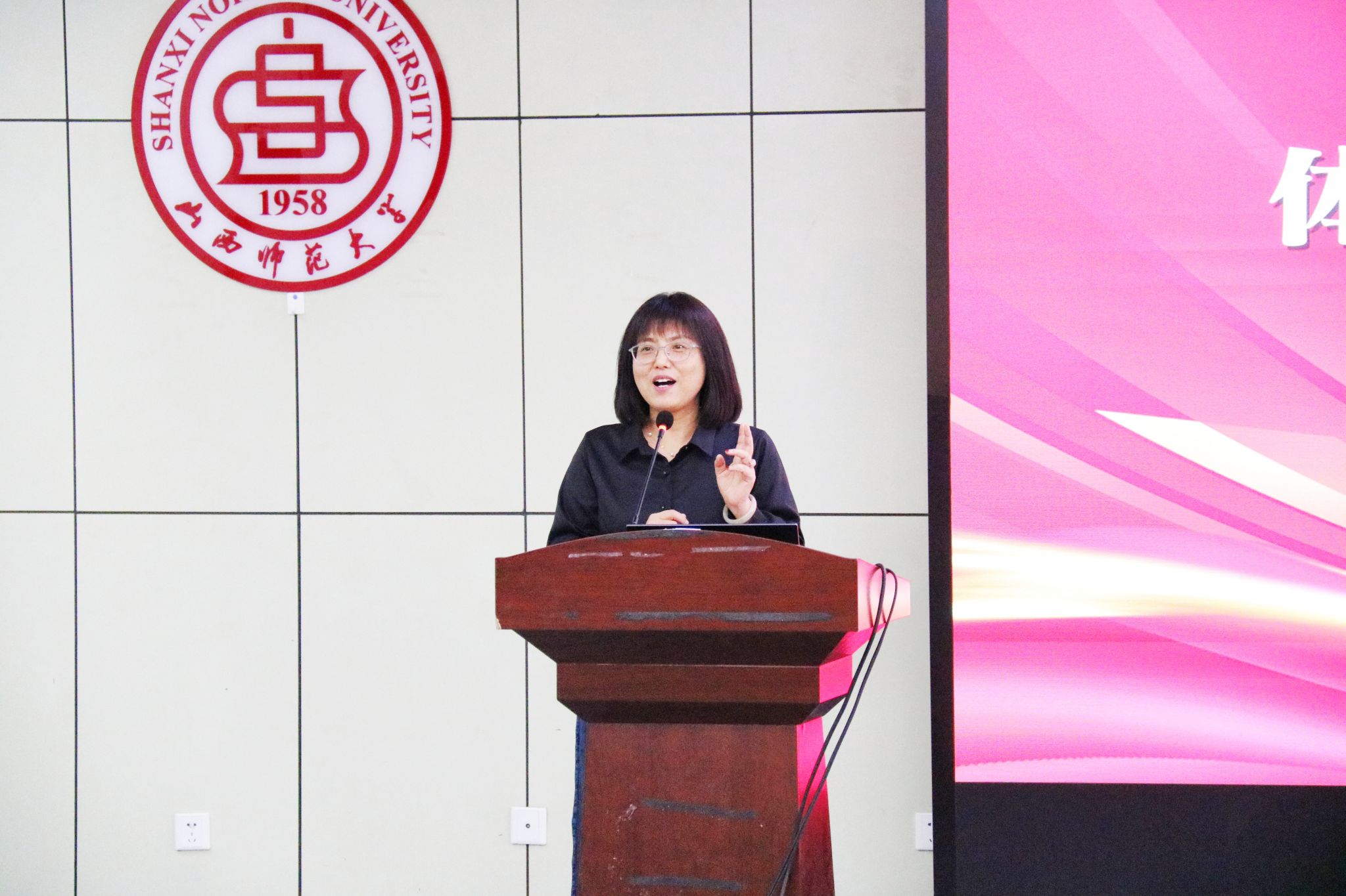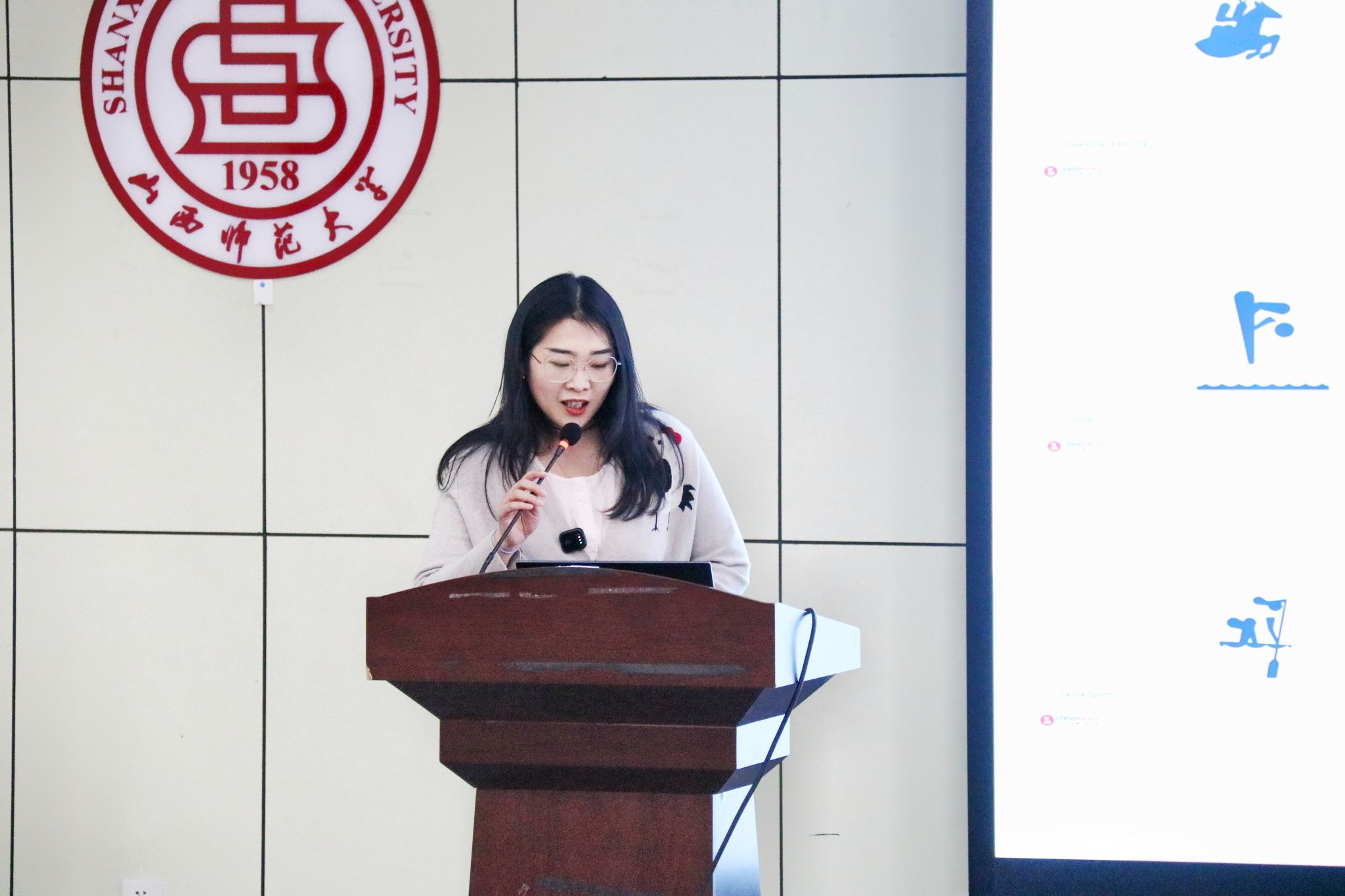 刘昂老师,建筑学博士,山西省教学名师,相继荣获国家级、省级教学奖34项,主持山西省教学成果奖一等奖、主持及参与各类科研项目 20 项等。本次课刘昂老师以《奥运建筑设计故事》为切入点,提前在太阳集团tcy8722众师生中发放场馆设计问卷,将AI技术与体育场馆设计相结合,形象展示AI技术在体美融合中的运用,并提出“从文化中提取形象,在形象中展示文化,在时代中彰显科技,在情感中身份认同”的文化传承创新路径,生动展示了科技与艺术在体育领域的跨界融合,为师生打开教学创新的新视角。