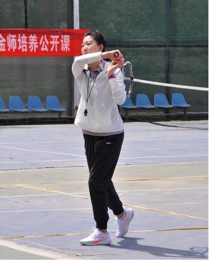 张学龙老师是华东师范大学硕士,现任社体系副主任,深耕网球教学训练15年。他以“正手截击技术”为核心开展教学,凭借丰富经验,将技术动作细致拆分,在实操指导中,让员工在挥拍、截击动作里,领悟精准发力和时机把握的关键。他指导的师大网球队成绩优异,还荣获2023 - 2024年模范辅导员称号,在其他赛事指导上也成果显著。课堂上,他展现出的专业功底和育人热情,感染着每一位员工。