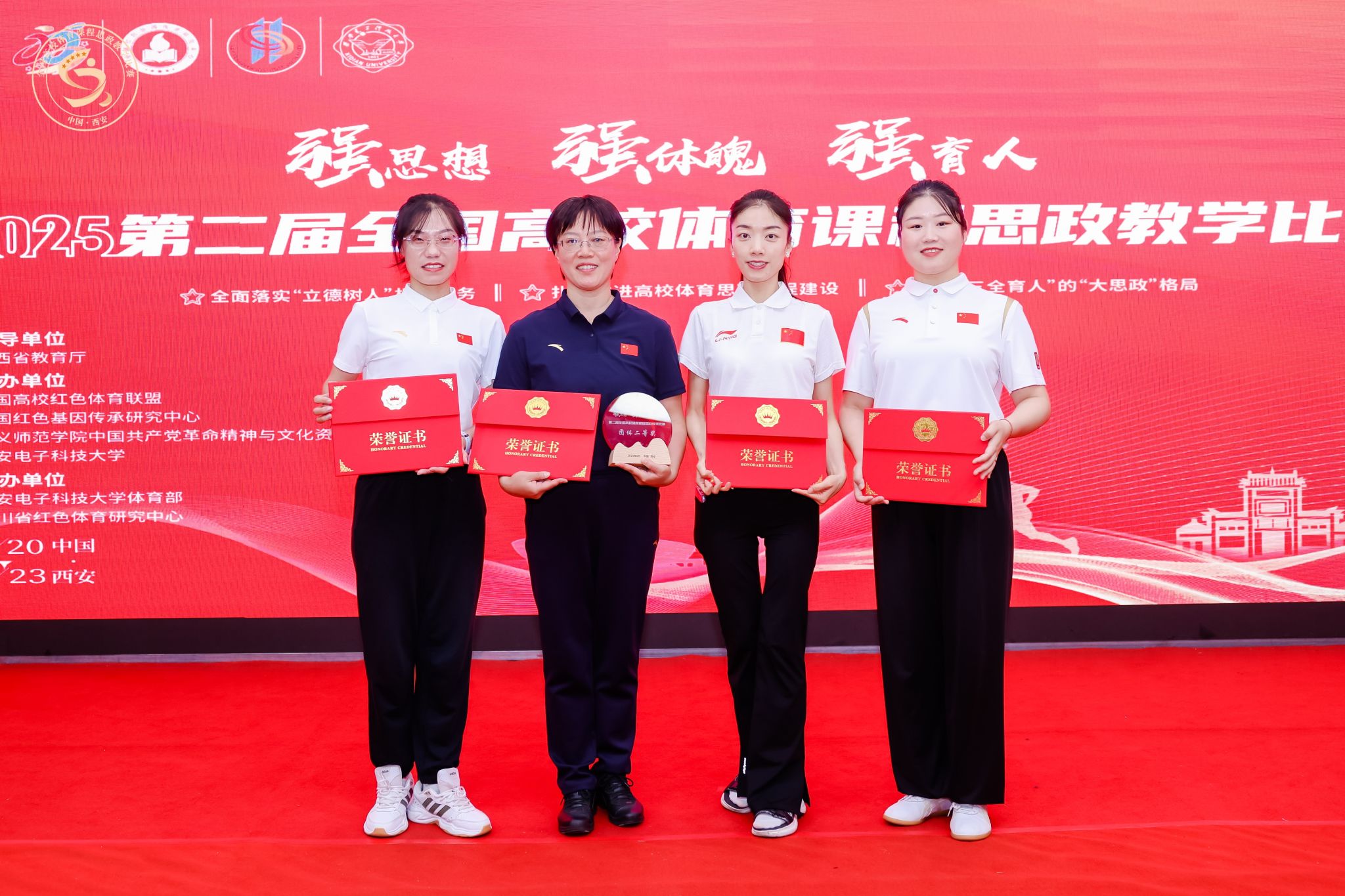 2025 年 6 月 22 日,第二届全国高校体育课程思政教学比赛圆满落幕。太阳集团tcy8722教师团队在此次大赛中表现卓越,斩获多项殊荣,充分展现了公司在体育课程思政建设领域的雄厚实力与卓越育人成效。皇甫立慧老师荣获教师术科组一等奖,郑文静老师获得二等奖,薛更新老师获得三等奖。郭丽娟老师凭借出色的指导能力获评“优秀指导教师”。同时,太阳集团tcy8722以优异的综合成绩荣获团体二等奖。