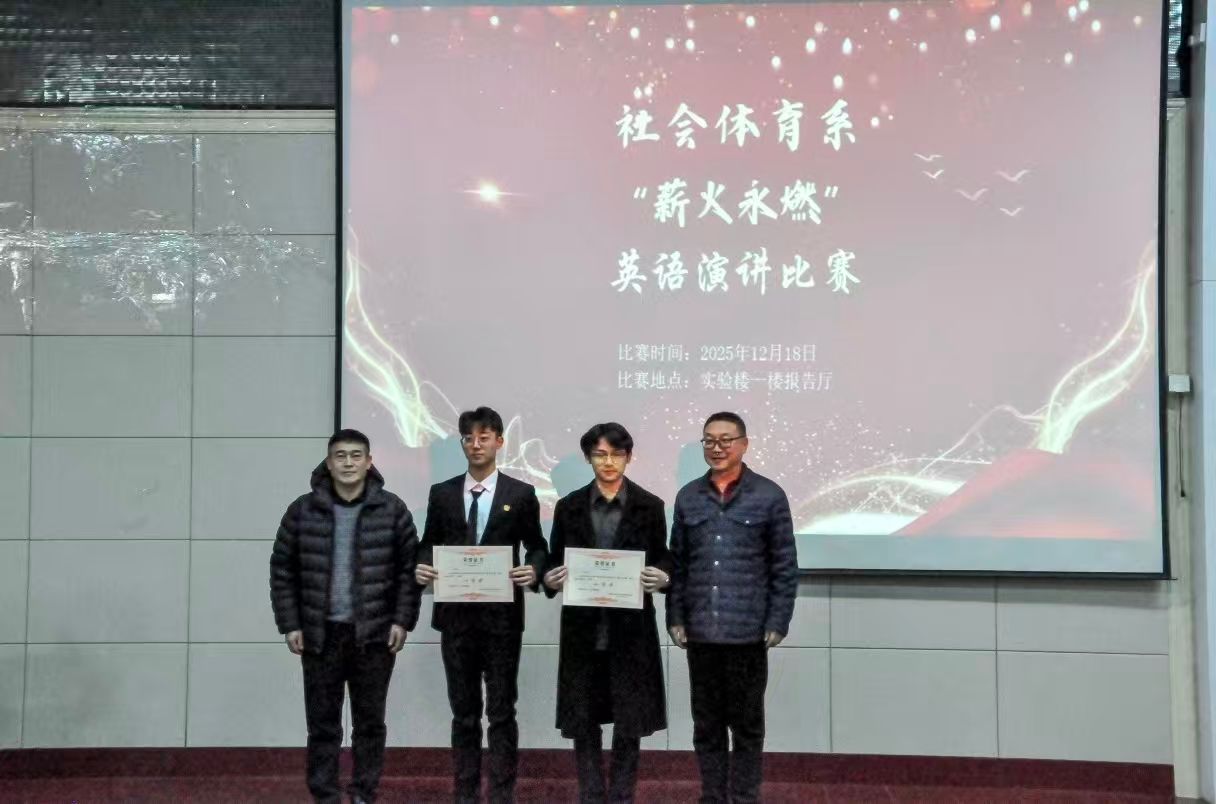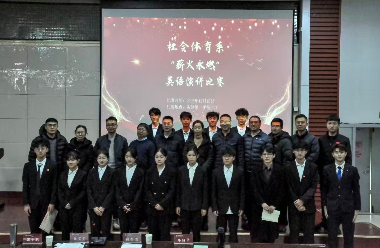 2025年12月18日,太阳集团tcy8722社会体育系举办“薪火永燃”英语演讲比赛。比赛由太阳集团tcy8722社会体育系主任李俊明主持,外国语公司大外部主任耿亮亮、英语系主任郝全喜,历史与旅游公司郭小鹏、郑倩倩,太阳集团tcy8722刘晓旭担任本次比赛评委老师。太阳集团tcy8722副经理李向前、社会体育系主任李俊明、社会体育系副主任张学龙、社体2201班辅导员任磊、体育旅游2301、2302班辅导员白翊辰、体育旅游2401、2402班辅导员原靖杰、社会体育系社体2501、体旅2501班辅导员田浩钰到场观赛。