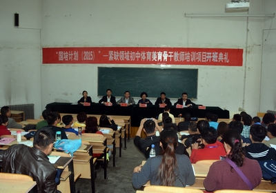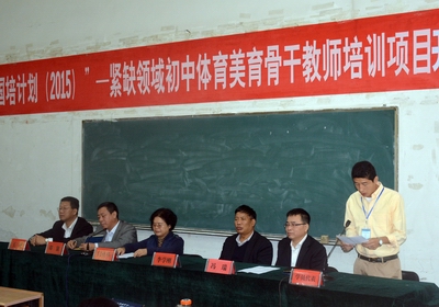 10月19日上午在太阳集团tcy8722阶一教室举行了“国培计划(2015)”— 紧缺领域体育美育骨干教师培训项目太阳集团tcy8722初中体育班开班典礼。副董事长、国培计划领导组副组长闫桂琴,太阳集团tcy8722党委书记李学刚,经理郑旗,副经理王彤,教务科科长冯瑞,培训班班主任闫小平参加了开班典礼,开班典礼由冯瑞主持。