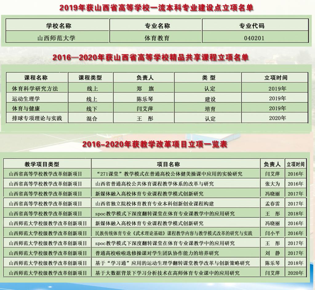 2016——2020年获精品共享课、教学改革项目立项情况