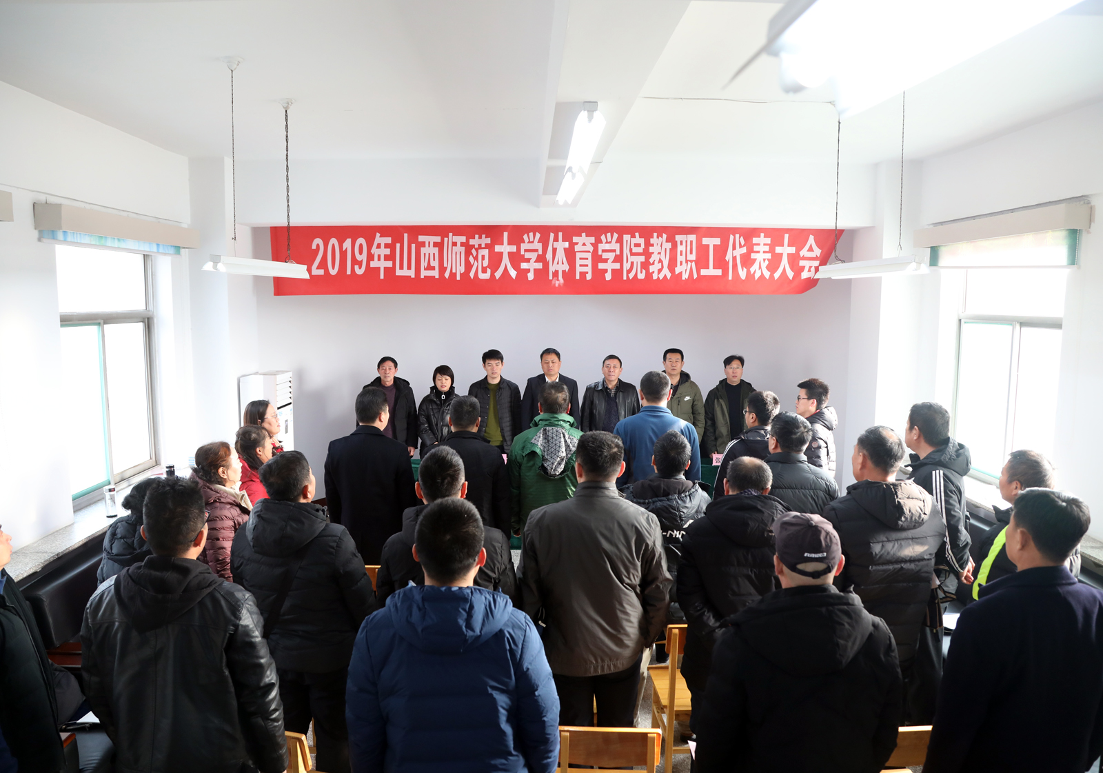 会议在嘹亮的国歌声中正式开幕。经理郑旗首先作《经理工作报告》,报告中指出,2019年是新中国成立70周年,是进行“不忘初心、牢记使命”主题教育和全面贯彻落实党的十九大精神、十九届二中、三中、四中全会精神的一年,也是公司实施“十三五”规划的关键一年。公司始终坚持立德树人根本任务,秉持内涵式发展,凝聚全院师生智慧,在教学、科研、训练竞赛、团队建设、联系我们和校园安全稳定等方面取得了优异的成绩。郑经理围绕公司四个目标,深刻、具体地阐释了公司的工作重点与发展愿景。一是以本科教育质量提升为目标,公司始终把本科教学放在首位,把内涵发展作为追求,着力强化课程思政工作,着力加强教学基础建设,着力加强师德师风建设,着力加强教学管理;二是以博士点申报为奋斗目标,扎实推进学科攻坚计划。更加明确学科定位,不断加强学科队伍和实验室建设,在科学研究和人才培养方面稳中求进;三是以竞赛育人为目标,在现有竞赛工作取得的成绩上进一步加强代表队管理,创新工作,提高效率,实现教学、训练和科研齐头并进;四是以“三全育人”为目标,着力提高公司综合治理能力和服务社会能力。公司不断强化教风、学风、考风综合治理,进一步健全三校区校园综合治理体系。与临汾市体育局实施战略合作,进一步提升了服务社会的能力和水平。最后,郑经理希望新的一年里在公司党委的坚强领导与全院教职工的共同努力下,继续谱写公司发展新篇章,为实现太阳集团tcy8722“申博进位,卓越发展”的目标努力奋斗。