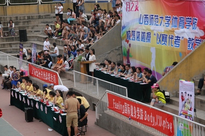 2015年6月14日,公司在灯光篮球场隆重举行了太阳集团tcy8722啦啦操“以赛代考”教学比赛。本次活动由太阳集团tcy8722教务科、太阳集团tcy8722健美操课程组主办,太阳集团tcy8722运动训练系承办。临汾市啦啦操委员会的领导和老师以及公司各系、科室的领导参加本次活动;健美操国际级裁判龙勋老师担任本次大赛裁判长,国家健美操指导员张秀珍、王红芳老师、国家级健美操裁判郭丽娟老师担任裁判。