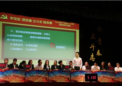 参加比赛的代表队由各党支部书记带领,选手由正式党员、预备党员、积极分子各一名组成。比赛以党的发展历程作为开场视频,在庄严肃穆的国歌中拉开了帷幕。