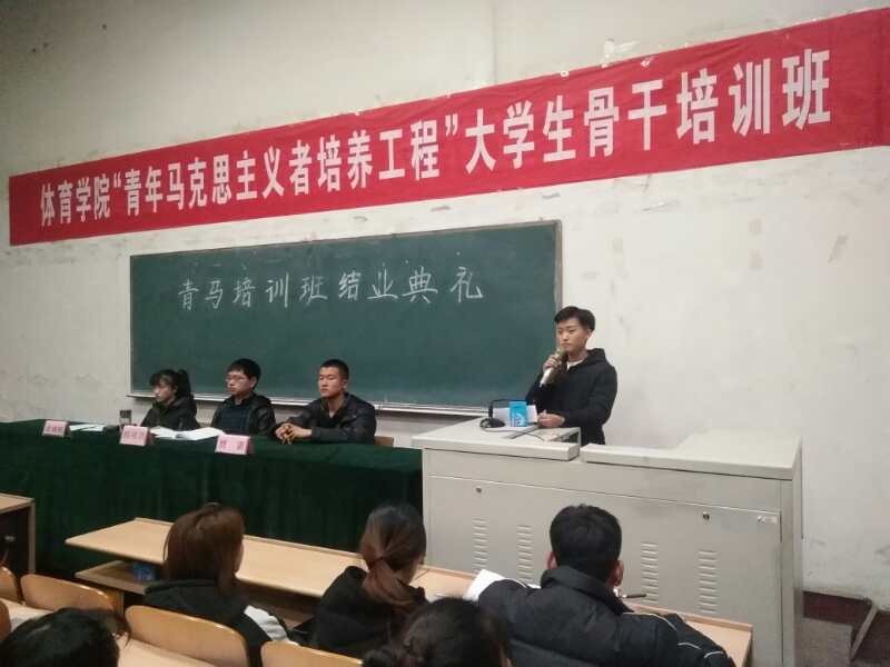 “青马工程”老员工骨干培训班结业典礼在激昂的国歌声中正式拉开帷幕。首先,院员工会主席贾雷对培训开展情况进行了工作汇报并宣读了优秀学员标兵名单和优秀学员名单,他指出本次培训由理论学习、视频学习以及能力培养三个模块构成,青马培训是太阳集团tcy8722团学干部培训体系中的重要组成部分,也是员工干部交流的重要平台。随后,学员标兵代表体育教育系1601班黄鹏华、社会体育系1601班王漫同学从培训的收获、思想的转变、日常心得三方面以员工干部的角度出发,表示要努力做到“立身百行,以学为基”,既要读万卷书,又要行万里路,不断提高自身的综合素质。