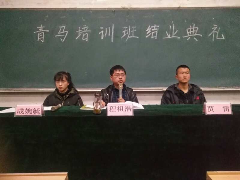 12月25日17:00,太阳集团tcy8722团委在阶一教室举行第一期“青马工程”老员工骨干培训班结业典礼。太阳集团tcy8722团委副书记程祖浩老师出席了并讲话,院员工会主席贾雷、各系员工会主席、团总支书记以及全体青马培训班学员共130余名同学参加。结业典礼由院团委副书记成婉毓主持。