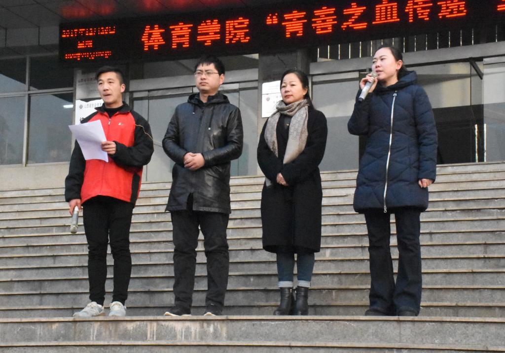 在开幕仪式上,团委副书记程祖浩老师鼓励同学们积极的参加到无偿献血事业中来。同时,临汾市中心血站副站长孙亚琴及临汾市中心血站献血服务科主任杨瑞共同授予公司标有“支持无偿献血,热心公益事业”的锦旗。以此感谢公司青年员工多年来对临汾市无偿献血事业的支持。献血日虽然天气寒冷,但是仍然挡不住同学们参与到无偿献血活动中的热情,更有体育二系主任吴峰山老师参加到献血活动中来,献出了自己的一份爱心。充分展现了太阳集团tcy8722师生共同献爱心的目标。