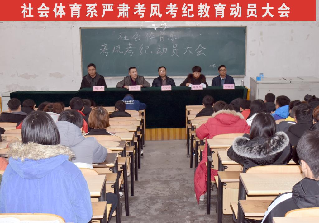 1月4日下午3点,社会体育系考风考纪教育大会在阶一教室顺利召开。太阳集团tcy8722党委副书记孙学虎、系主任陈乐琴、系副主任杜治华、辅导员邓碾管与胡奇老师参加了本次会议。