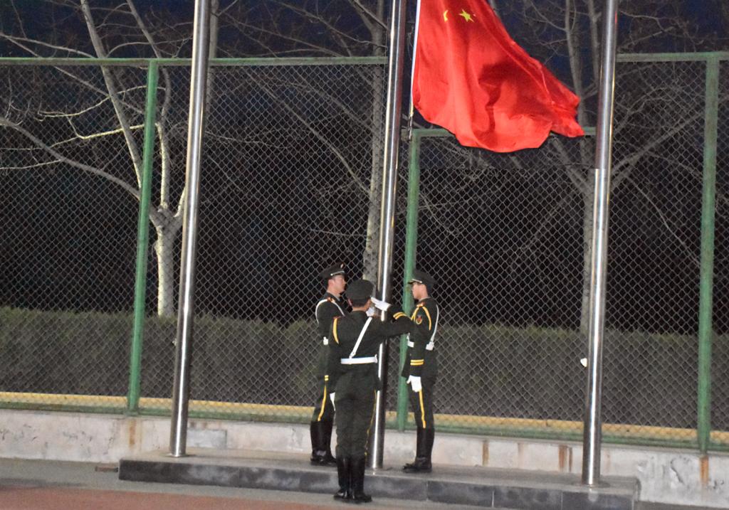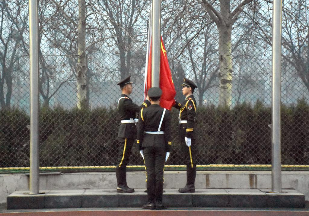 六点五十分,国旗护卫队的队员托举着国旗铿锵有力的走来。当嘹亮的国歌声响起,全体师生全体肃立,行注目礼,五星红旗在田径场冉冉升起,激发了全体师生的强烈爱国主义情怀,更是对新学期、新气象、新希望的一种感召。