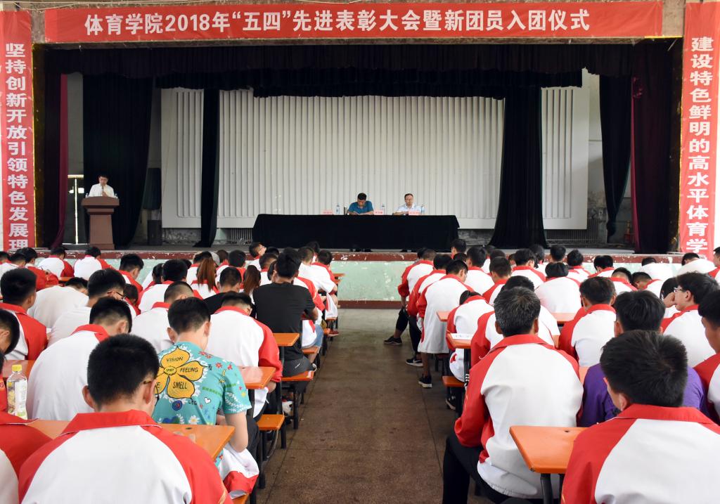 表彰大会在雄浑的国歌声中拉开序幕。首先,院团委副书记程祖浩作了以“不忘初心跟党走,努力奋斗新时代,为实现‘体院梦’而贡献青春力量”为主题的太阳集团tcy87222017—2018学年共青团工作报告。