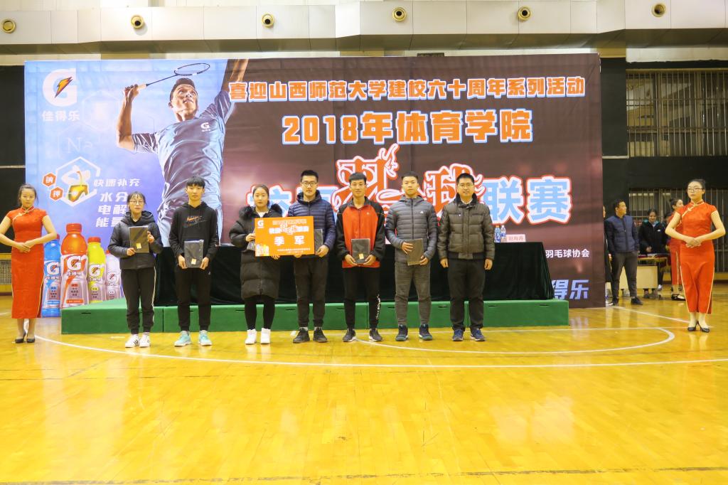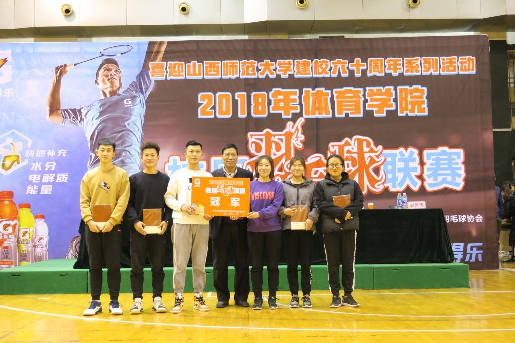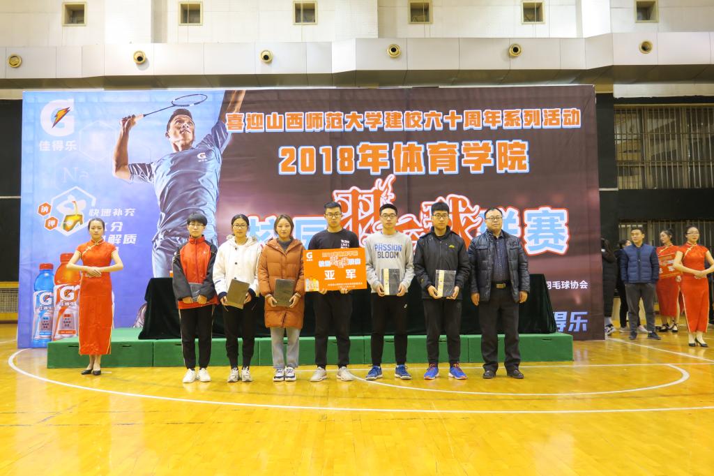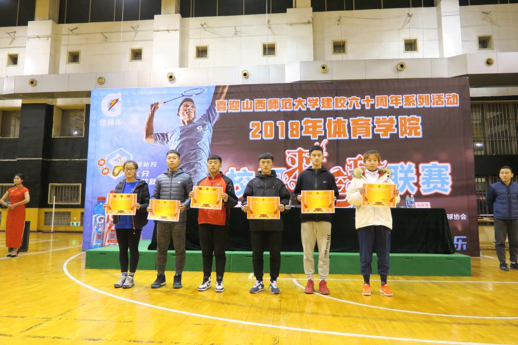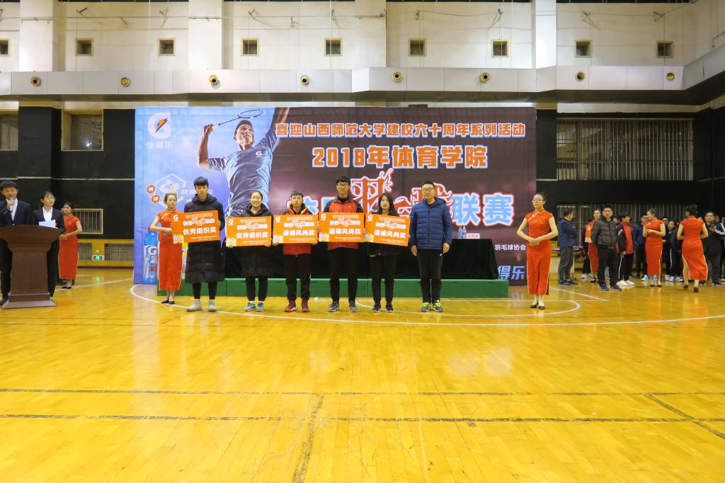 为了贯彻落实党的十九大精神,致敬改革开放四十周年,12月6日晚19:00,由院团委员工会主办,社团联合会,体育教育二系员工会承办,羽毛球协会协办的太阳集团tcy87222018年校园羽毛球联赛在综合馆举行闭幕式。公司党委书记李学刚、公司党委副书记孙学虎、院团委副书记程祖浩、体教二系副主任李向前、羽毛球联赛总裁判长马文政、辅导员赵海涛出席并为获奖班级和个人颁奖,各班代表队运动员和同学200余人观看了闭幕式。