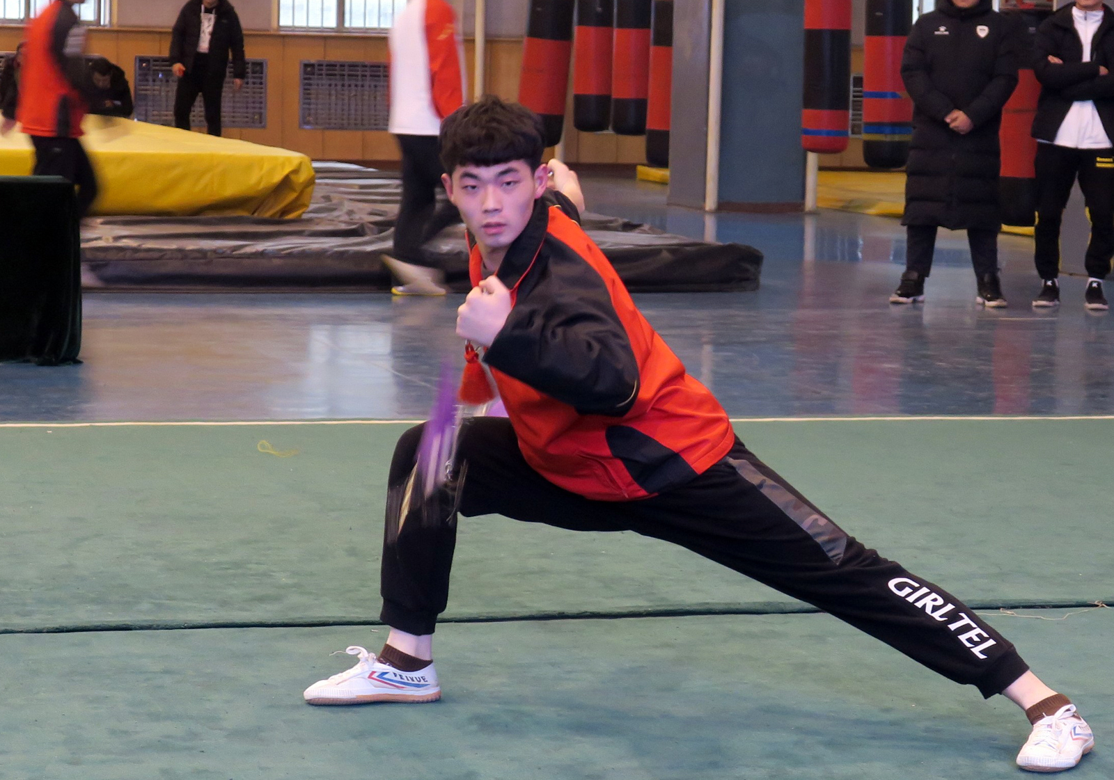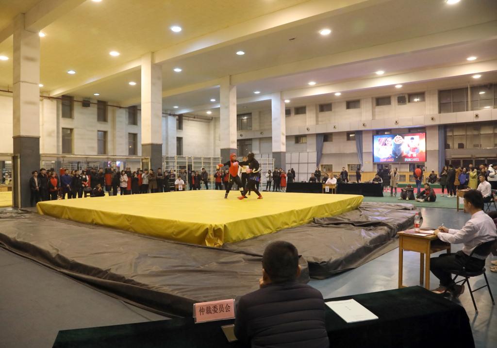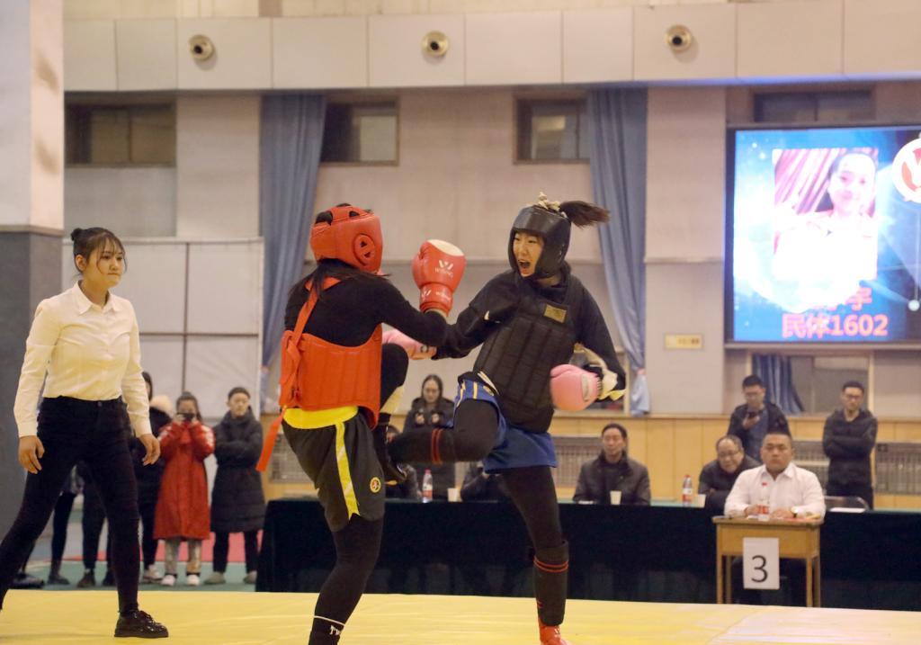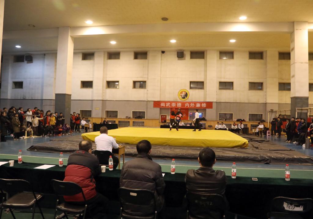 12月24日晚19:00,第二届武术大赛举行开幕式,公司党委副书记孙学虎、民族传统体育系主任赵道卿、院团委副书记程祖浩和民体17级、18级辅导员高贯发、刘剑参加开幕式。开幕式上,民体系同学带来了舞狮和武术表演。随后,进行了武术套路比赛,武术套路分为长拳、南拳、太极、形意、传统一类拳、传统二类拳、自选刀、自选剑、自选长器、太极剑等十三个比赛项目。赛场上武术健儿们斗志昂扬,动作连贯行云流水,引来了观众的阵阵喝彩与掌声。武术散打大赛设有男女两个组别(其中女子55kg、65kg、65+kg;男子55kg、60kg、65kg、70kg、75kg、80kg、85kg、85+kg)。比赛过程中选手们思维冷静,身手敏捷,击打部位准确,点到即止,尽显文明尚武风范。