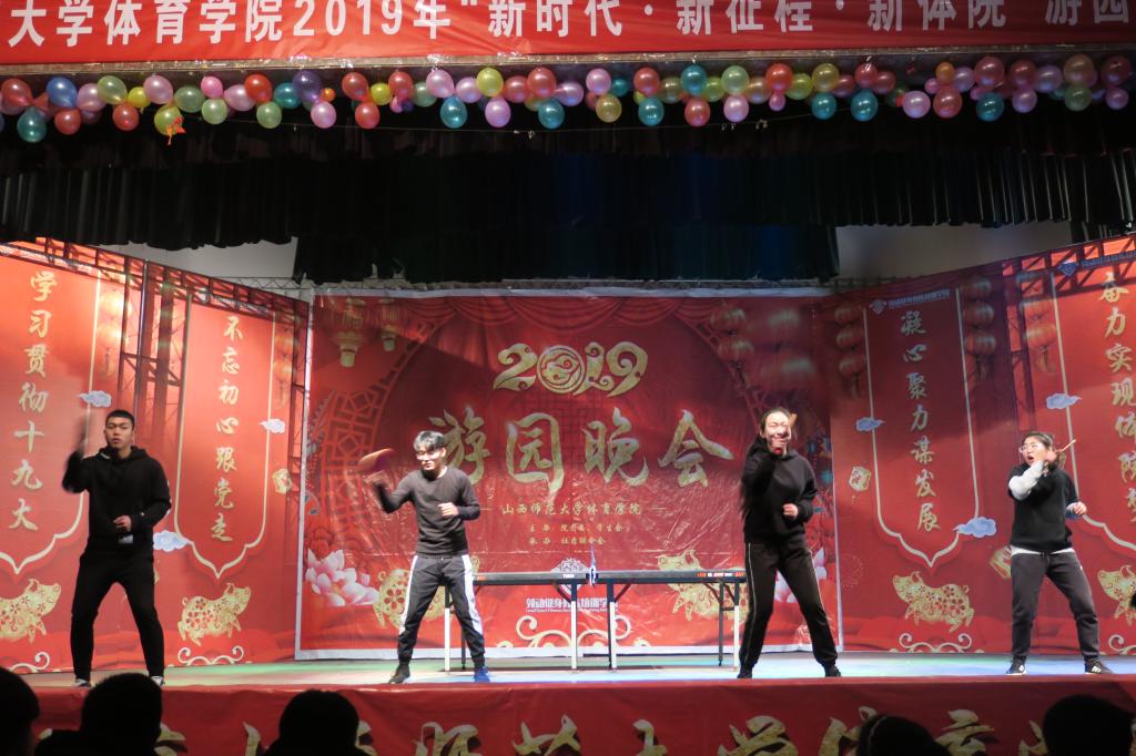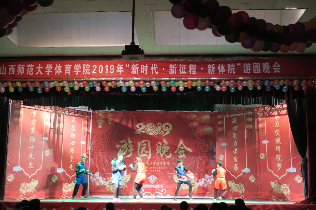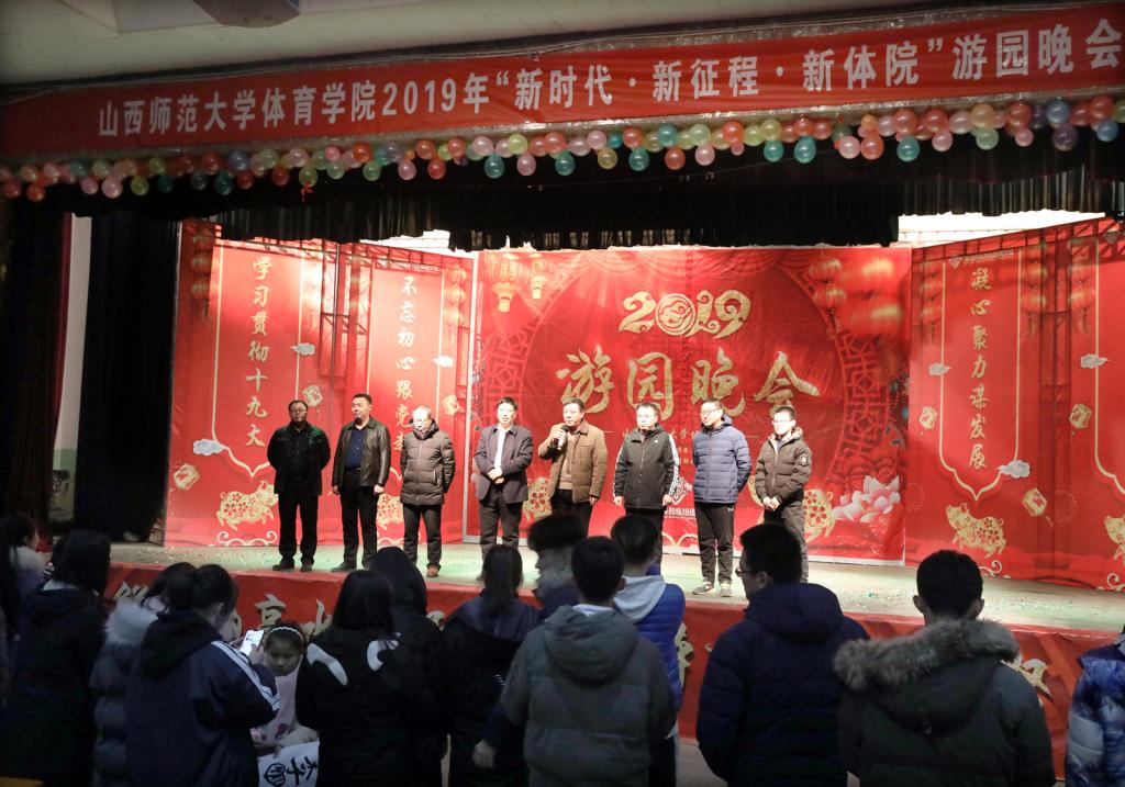 2018年12月31日,由太阳集团tcy8722团委员工会主办,员工社团联合会承办的“新时代 新征程 新体院”游园晚会暨新年团拜会在大礼堂举行,全院400余名师生参与了此次活动。游园晚会包括节目表演和互动游戏两部分,历时三个半小时,游园晚会结束后举行新年团拜会。