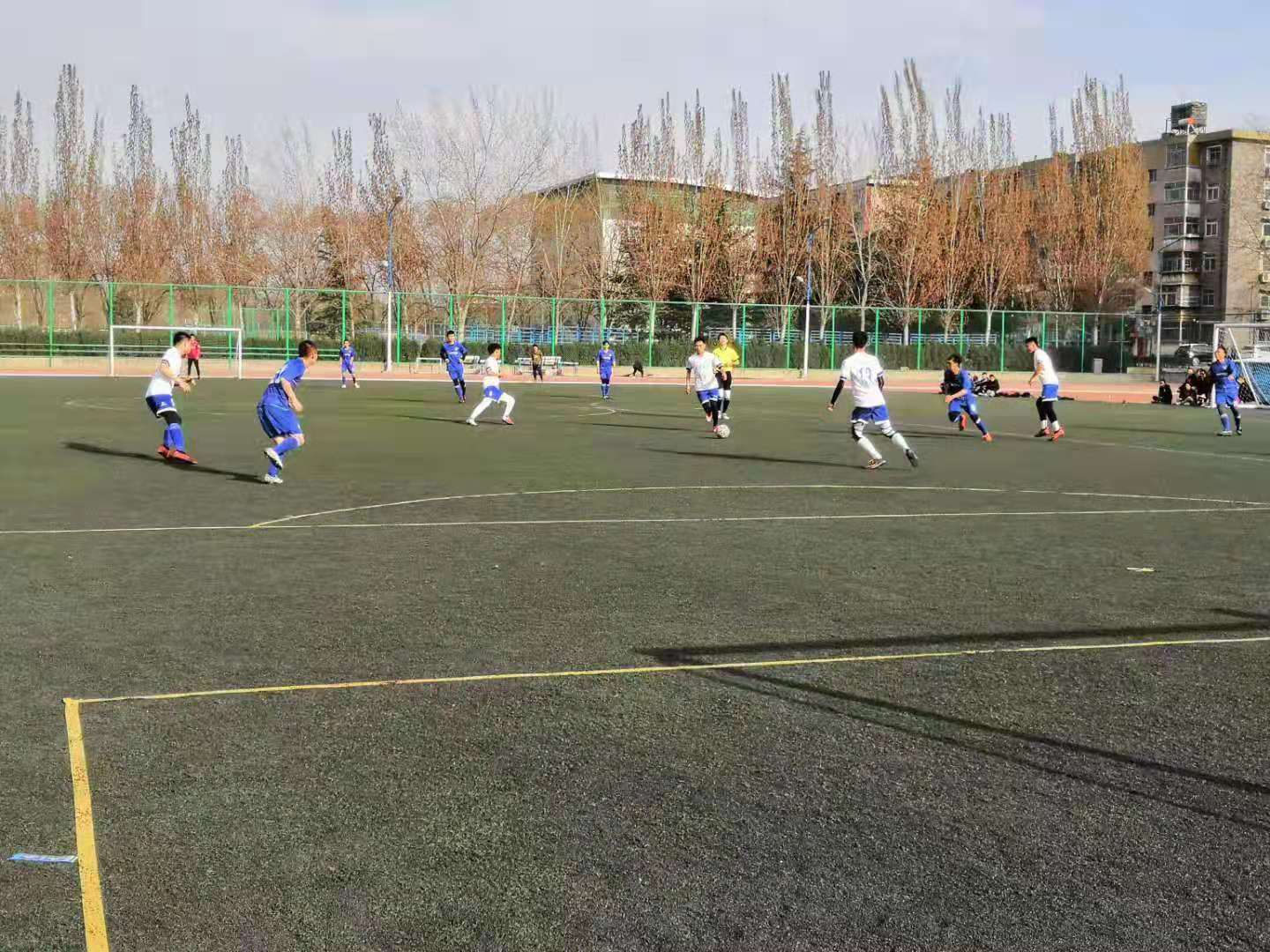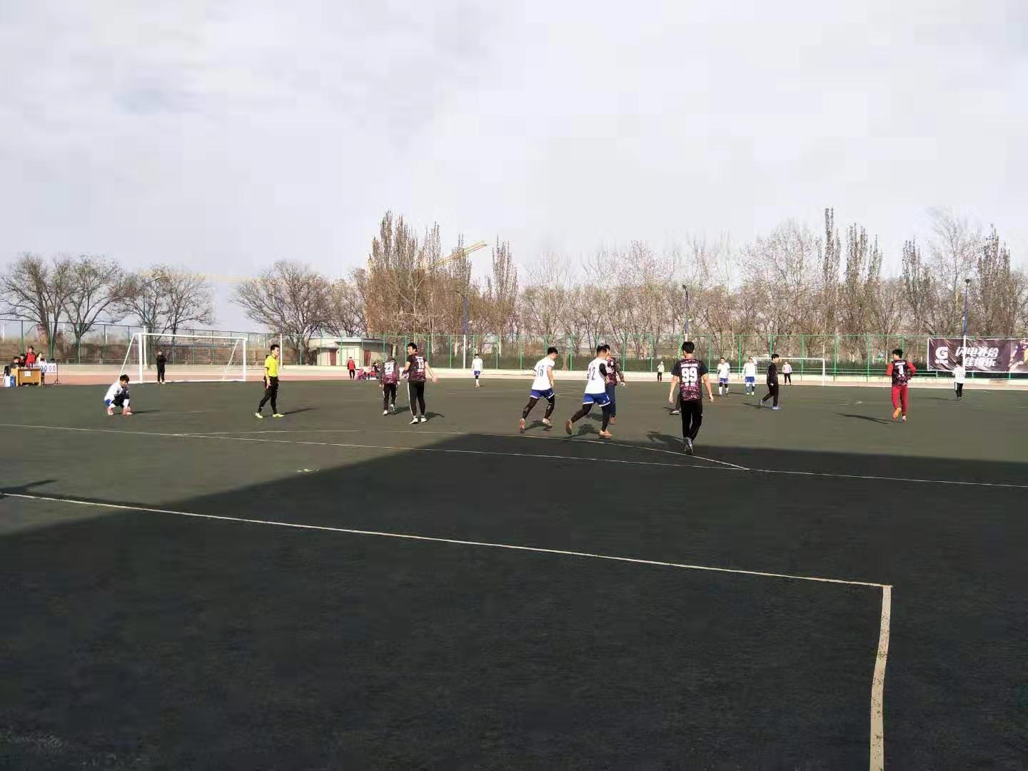 随着一声哨响,两个场地上同时开展了激烈的比赛,场上队员团结协作,奋力拼搏,博得了同学们阵阵掌声。