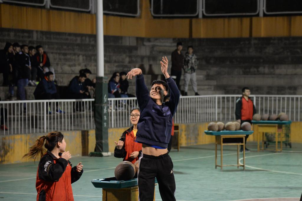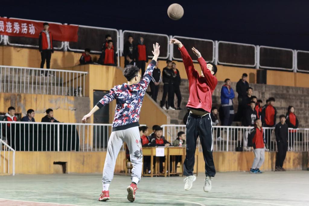 此次选秀分三个环节。第一个环节,球员们分甲乙两组同时进行,在一分钟规定时间内进行三分定点投篮。第二个环节,过障碍物上篮投球,球员从起点出发,连续运球绕过障碍物,进行三步上篮,之后运球转身,将球精确地投入板圈中,再进行三分投篮。第三个环节,1V1篮球对抗赛。伴随着激昂的旋律和观众们的热情呼喊,在这三个环节当中,球员们热情挥洒汗水,全神贯注的投入比赛,奋力拼搏,充分展现了良好的精神风貌。(院团委 供稿)