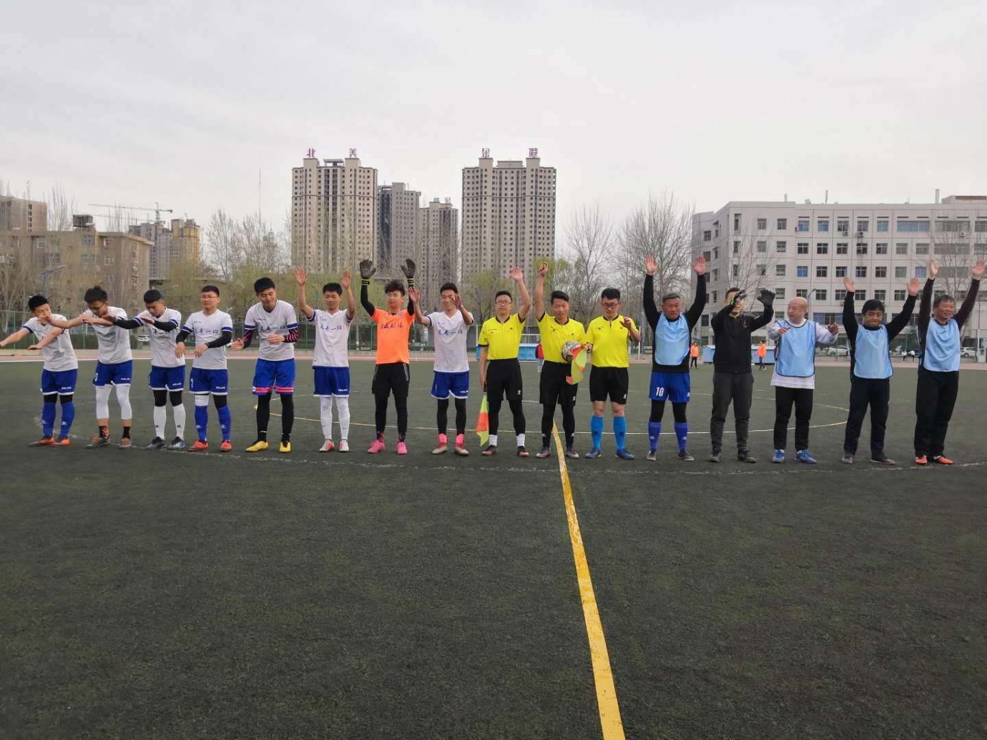 随后,由教职工代表队和冠军队1602班代表队给全体师生带来了一场激动人心的视觉盛宴,赢得了同学们的阵阵掌声,最后教职工代表队以5:0的成绩战胜了的冠军队。