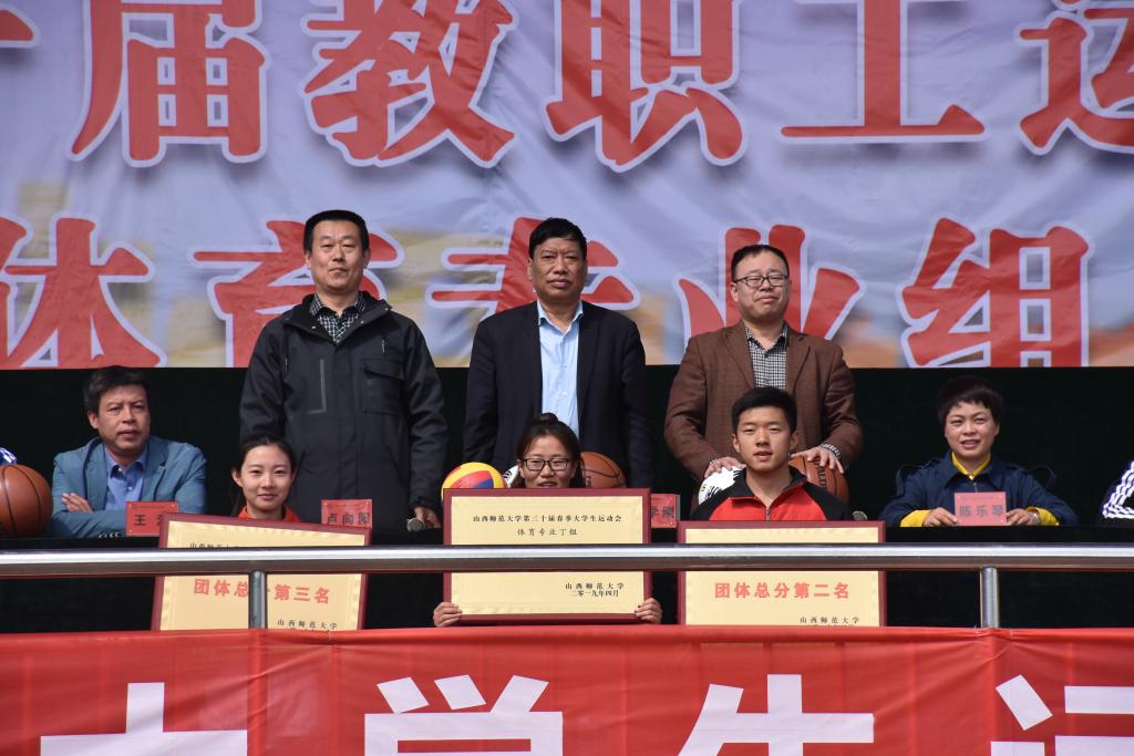 运动会闭幕式于14日早10:10分举行,全体院领导及各单位负责人参加了闭幕式,副经理陈乐琴主持。首先总裁判长王文武宣读了此次运动会竞赛成绩。体育教育系1804班、1801班、1601班、1803班、1702班、1603班分获甲组团体总分前六名;运动训练系1801班、1803班、1701班分获乙组团体总分前三名;民族传统体育系1601班、1602班、1501班分获丙组团体总分前三名;体育教育二系1701班、1703班、181001班分获丁组团体总分前三名。公司党委副书记孙学虎宣读了运动会受表彰的集体和个人的名单,共评出6个“体育道德风尚奖”,102名优秀运动员,19名优秀裁判员,33名优秀青年志愿者,院、系领导为获得各类奖项的集体和个人进行了颁奖。
