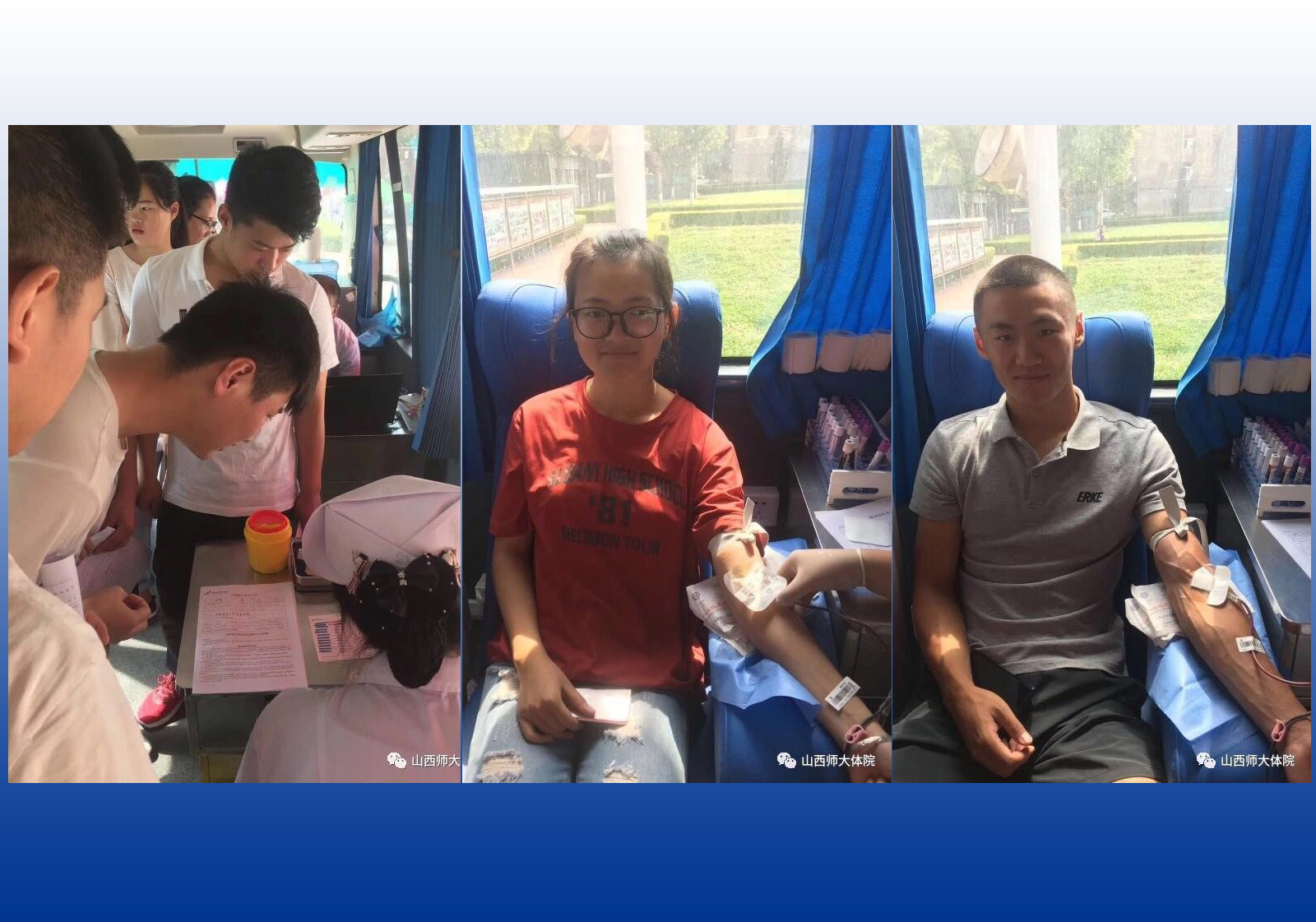 活动期间,“蒲公英”青年志愿者服务队的志愿者在献血车前积极做好献血引导及宣传工作,为自愿前来献血的同学们做献血前的检查和填写登记表。在献血车上,临汾市中心血站的医护人员认真负责的进行采血工作并嘱咐同学们献血后的注意事项。