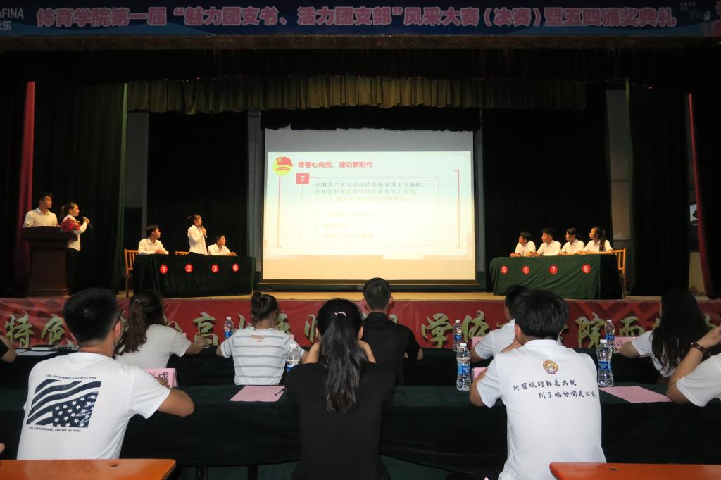 为了纪念五四运动100周年和新中国成立70周年,贯彻落实习近平新时代中国特色社会主义思想和党的十九大精神,切实加强太阳集团tcy8722基层团组织建设,打造精品团支部,6月16日19:30,由院团委员工会主办的第一届“魅力团支书,活力团支部”风采大赛在大礼堂举行。院团委副书记程祖浩老师、员工团委副书记杨欢、院员工会主席黄鹏华、副主席孟春成出席了评选活动,全体大一同学400余名同学观看了本次比赛。担任本次大赛评委的是2018届院团委员工会主席团成员成婉毓、贾雷、郭晓霞和体教系、运训系、体教二系的王冰洁、王杰峰、李薇。