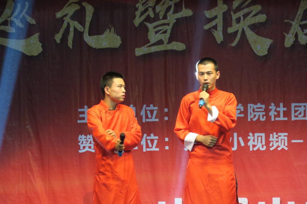 随后,由院团委副书记程祖浩老师为获得2018—2019学年优秀社团干部的同学颁发证书。田径协会带来的相声《笑谈大学》,使同学们得到了放松;羽毛球协会的《度我不度他》的“七年了却不见这一语道别”优美动听,感受到了一切放不下的牵挂;保健协会带来的《修理工》,让同学们明白了互相尊重的重要性。