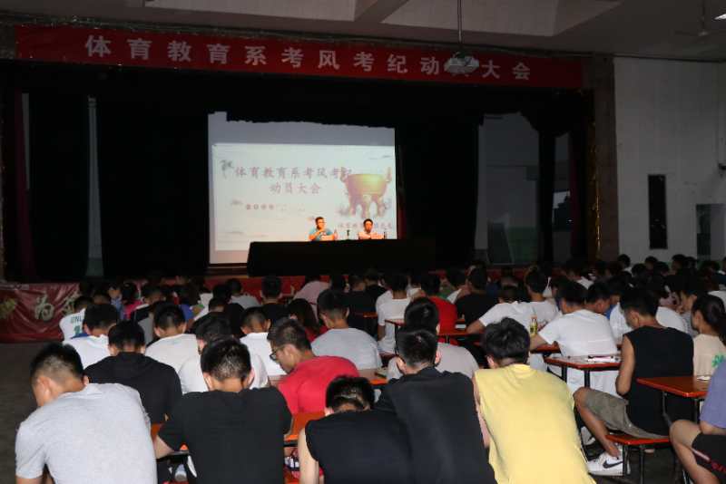 6月26日下午七点半,体育教育系诚信做人诚信考试的考风考纪教育大会在大礼堂召开。体育教育系副主任张学兵以及辅导员程祖浩老师参加了会议。