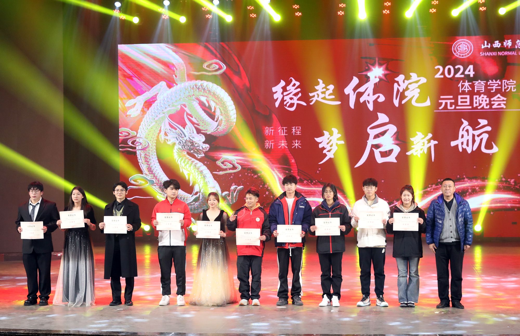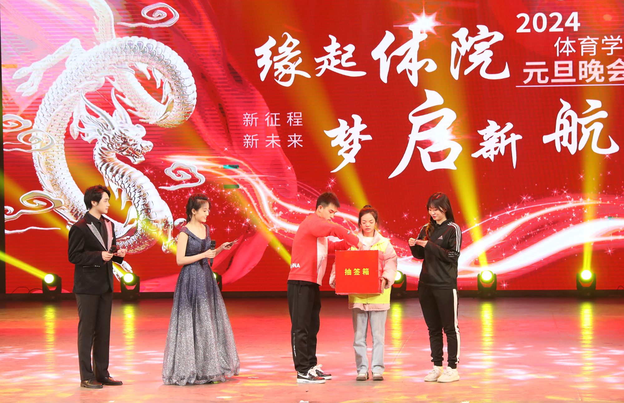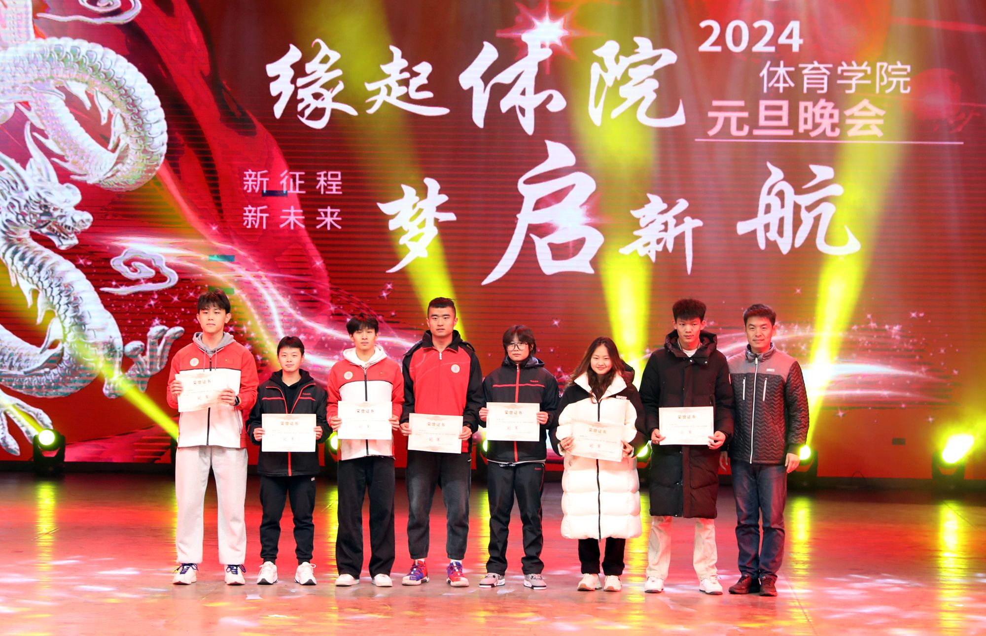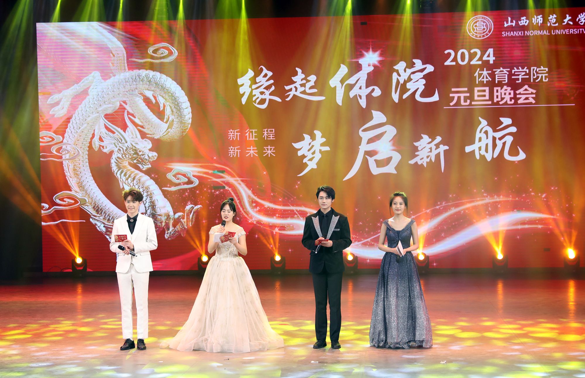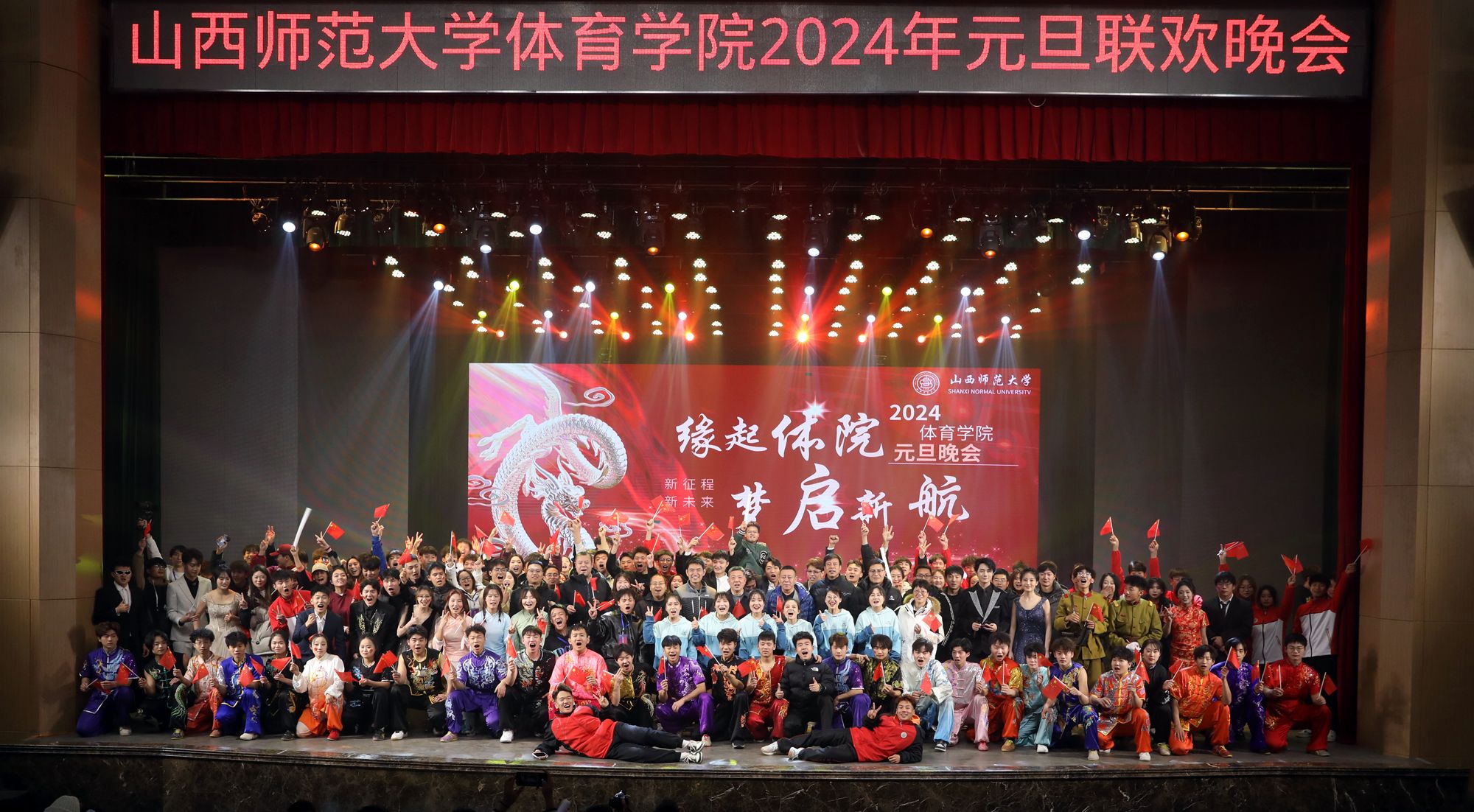 12月27日晚19:00,太阳集团tcy8722在北区艺术文化中心举办了2024年“缘起体院,梦起新航”元旦联欢晚会,公司党委书记卫建平、经理郑旗、公司党委副书记张大为、副经理王江、李海伟、公司党委委员张杰以及各系部主要负责人、部分教职工,全院师生500多人共同观看了晚会。