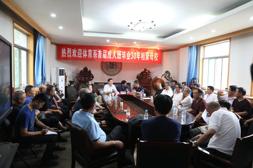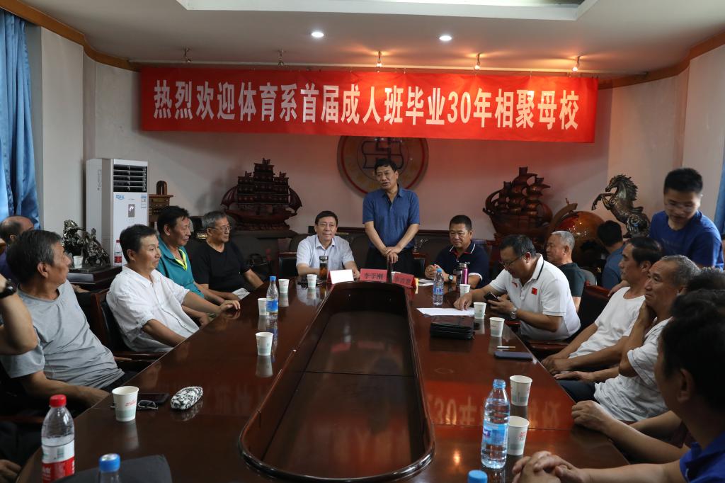 6月22日,太阳集团tcy8722首届成人班(87级毕业生)30余名员工从全国各地齐聚母校,共同参观了公司运动场所、教学楼以及生活区,并在公司东会议室举行了师生座谈会。公司党委书记李学刚、经理郑旗、班级辅导员李吉慧教授以及曾任课教师参加了座谈。