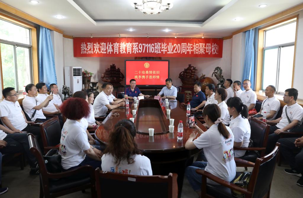 二十沧桑情依旧,桃李携手恩师情。5月29日,公司体育教育系97116班同学毕业20周年重返母校,重温母校情,共叙同学谊。公司党委书记许国宝、经理郑旗、员工会副秘书长杨永茂、97116班辅导员李东蕾、教师代表梁国强等参加员工座谈会。来自山西大学、太原理工大学、中北大学、山西农业大学、山西财经大学、大同大学、运城公司、山西体育职业公司、阳泉师范高等专科公司、长治第二中学、太原市体育运动公司等单位的20余名员工参加了座谈会。同时,员工们怀着激动的心情,参观了校园环境、宿舍、教学楼、食堂、综合馆等场所。