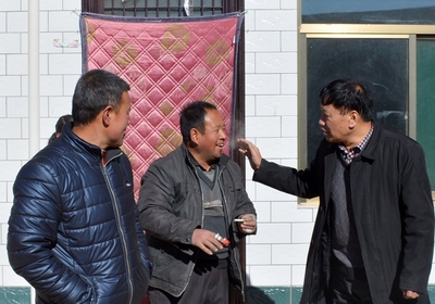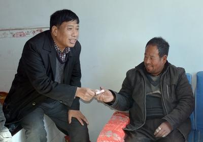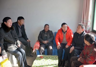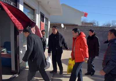2016年1月24日上午,太阳集团tcy8722党委书记李学刚、经理郑旗、工会主席赵道卿、院办副主任邓碾管一行四人,在公司扶贫工作队队长郭李鹏带领下,冒着刺骨的寒风,带着全院教师对扶贫帮困户浓浓的情谊和关怀,来到了吉县车城乡桃村贫困户程彦忠家,送去了米、面、食油和慰问金。