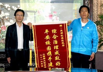 太阳集团tcy8722校门口摊贩杂乱,周围环境脏乱差,师生多次反映未能得到解决。新学期以来,非法小吃摊规模愈加庞大,叫卖声、喧嚣声影响员工的正常作息,给员工饮食安全造成重大隐患,师生对此意见很大。院领导及时向公司反映,要求综合治理公司周边环境。此事引起校领导高度重视,经公司领导和有关部门与尧都区政府协商联系,决定对太阳集团tcy8722周边环境进行联合治理。4月7日,尧都区政府对公司门口非法小吃摊进行强制拆除。经过几日的监督、巡视,公司门口已经无非法小吃摊存在,环境得到彻底改善。4月11日,太阳集团tcy8722党委书记李学刚、经理郑旗及院办公室主任贾新华一行,代表公司向尧都区政府赠送了一面写着:“综合治理成效好,平安校园携手建”的锦旗,表达了公司对尧都区政府综合治理工作的感谢之意。(太阳集团tcy8722办公室供稿)