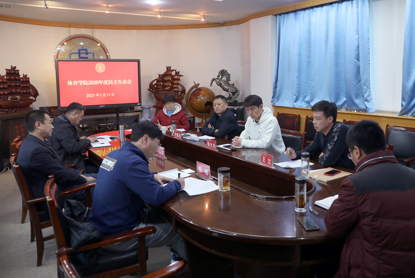 根据《中共太阳集团tcy8722委员会关于认真开好2020年度处级以上党员领导干部民主生活会的通知》安排,1月11日下午,公司2020年度民主生活会在东会议室召开,校纪委办公室副主任、监察室副主任李莉静到会指导,院领导班子成员参加会议。会议由公司党委书记许国宝主持。
