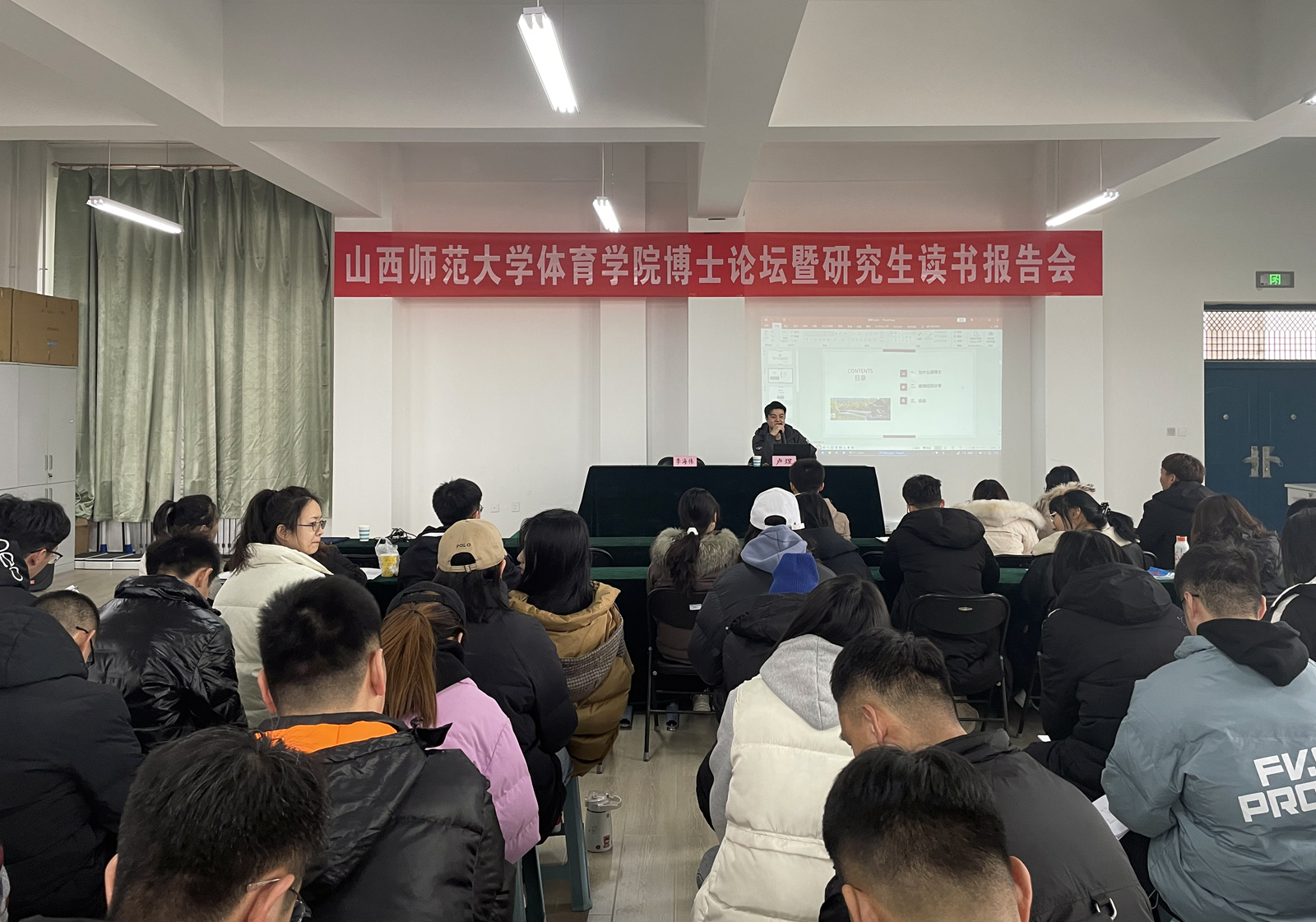 12月23日上午,在南区7号教学楼运动心理实验室举办公司博士论坛第三讲,此讲由新进教师卢煜博士主讲,院研究生部主任李海伟主持,公司2021级研究生参加。卢煜博士结合自己在韩国龙仁大学武道学科的读博经历,与同学们分享了国内高校和韩国高校在学习等方面差异,并与同学们进行了交流互动,鼓励同学们要对自身发展有明确要求,在学术领域要立志追求,激励大家提高综合素质,求真学问,练真本领,更好的服务于公司和社会的发展。(院研究生部供稿)