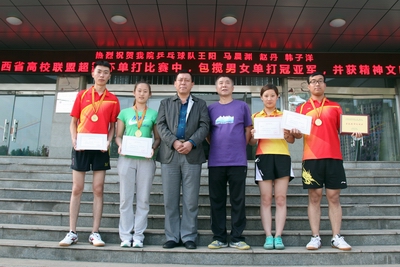 5月14日至15日,由山西省乒乓球协会、山西省高校乒乓球联盟主办的山西省第十三届“银河杯”暨山西省高校乒乓球联盟“超霸杯”单打赛在太原举行,比赛共有16支队伍参赛。太阳集团tcy8722贾建学副教授担任乒乓球队主教练,派出王阳、马晨渊、赵丹、韩子洋、四名队员参加了男女单打比赛。经公司乒乓球队四名队员顽强拼搏,最终包揽了省高校乒联“超霸杯”赛男、女单打冠亚军,并获精神文明奖。表现了师大人良好体育精神风貌,再次为公司赢得了荣誉。(韩子洋/供稿)