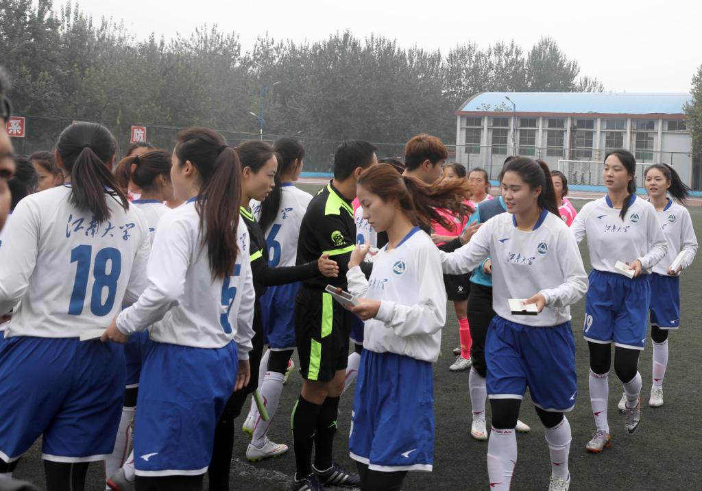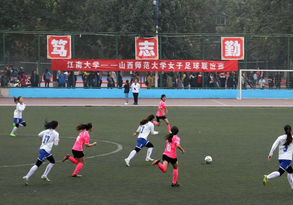 14日下午四点和15日下午三点半,两队进行了进行了十一人制的足球友谊赛。赛场上绿茵巾帼你争我抢,生龙活虎,展示了双方队员娴熟的技战术水准,令人眼花缭乱的配合加上快速的攻防转换以及各种门前大力抽射,为校园假日增添了愉悦的气氛。在比赛中江南大学的队员表现出色,队员整体素质较好,个人技术较为全面动作灵活,传接球意识较好判断球的落点准确,进攻主动防守积极配合默契。公司队员由于组队时间短、临场经验少,配合还不够流畅,但公司女足队队员凭着努力拼搏、永不言败的精神,顽强拼搏,赛出了自己的水平。最终两场比赛江南大学女足均已2:0获胜。