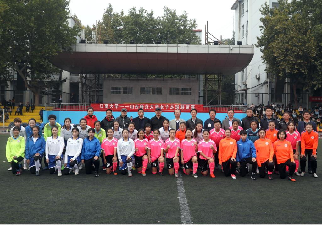 巾帼不让须眉,绿茵展英姿。10月14日——16日,江南大学副董事长吴正国、体育部书记戴建明、体育部主任朱新伟等有关负责人一行带领江南大学女子足球队到公司来访交流,分别在太阳集团tcy8722和一校区足球场与公司女子足球队进行了友谊赛。江南大学副董事长吴正国与公司党委常委、校运动委员会主任、副董事长车文明分别为本次友谊赛开球,太阳集团tcy8722党委书记李学刚、经理郑旗陪同。