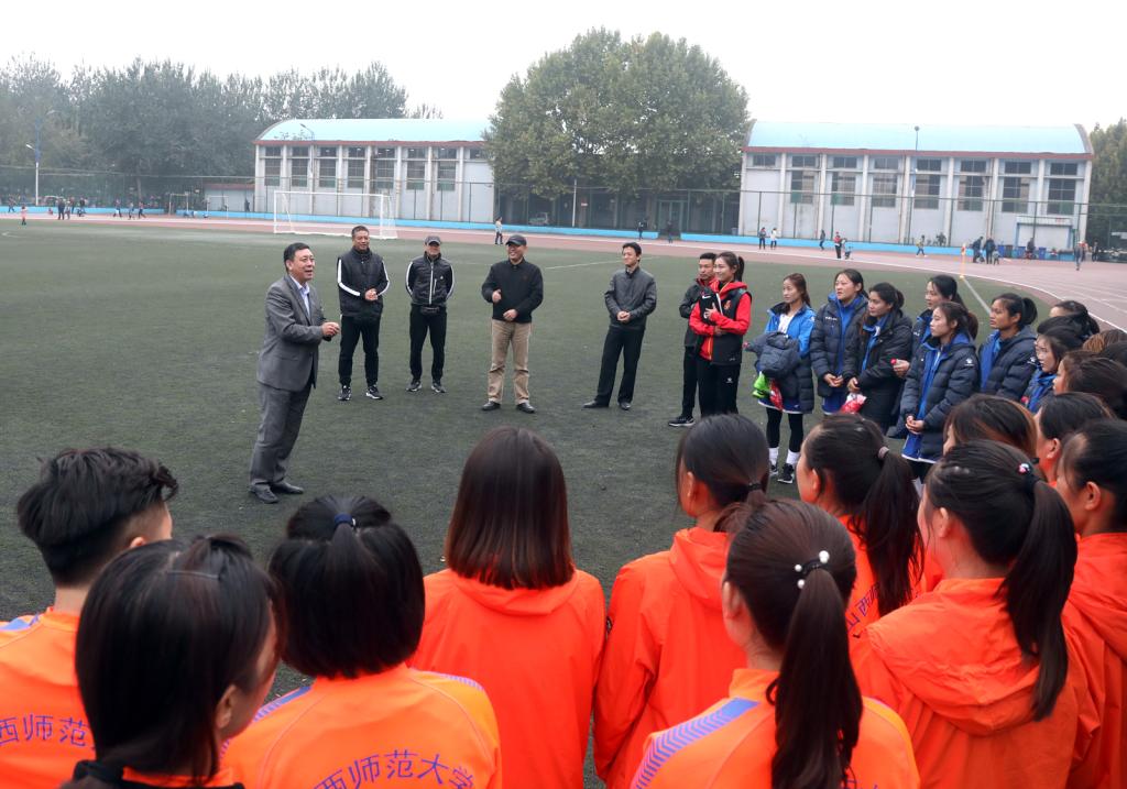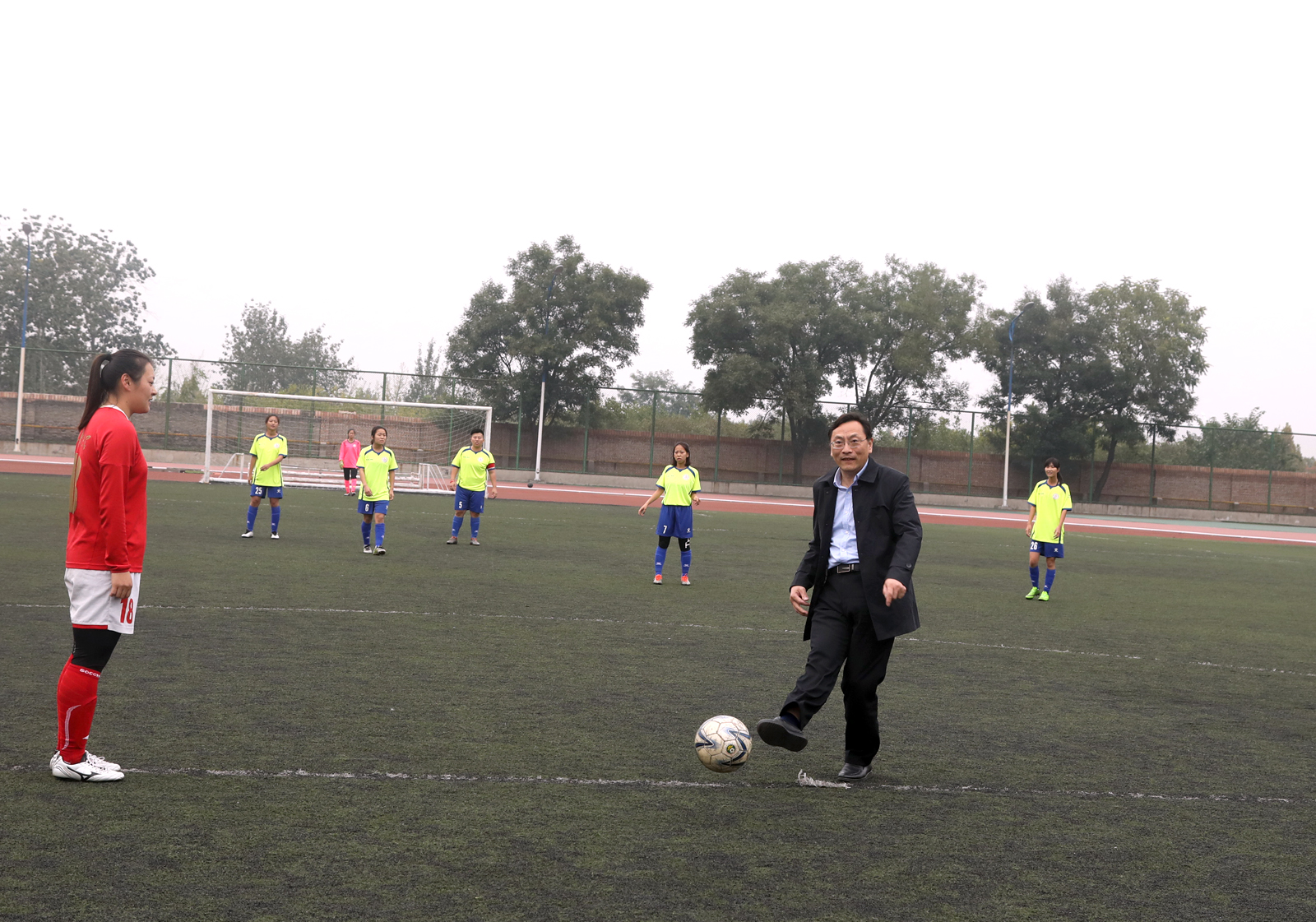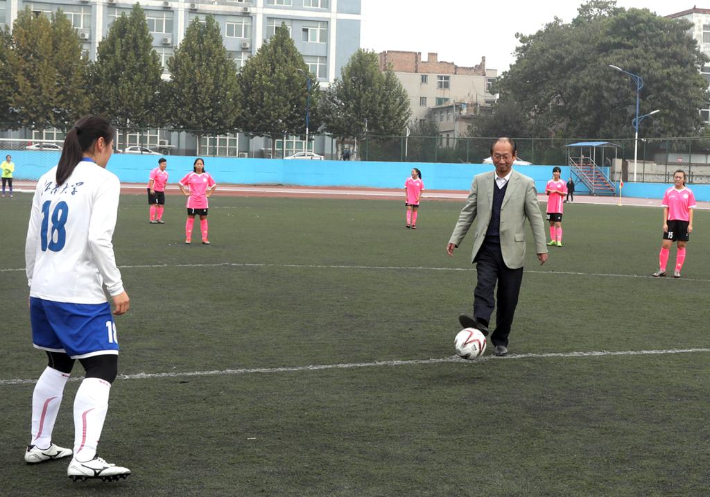 党委常委、校运动委员会主任、副董事长车文明为第二场友谊赛开球