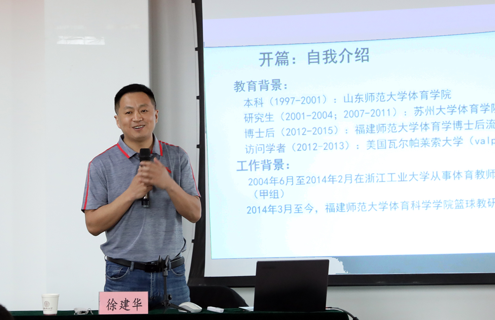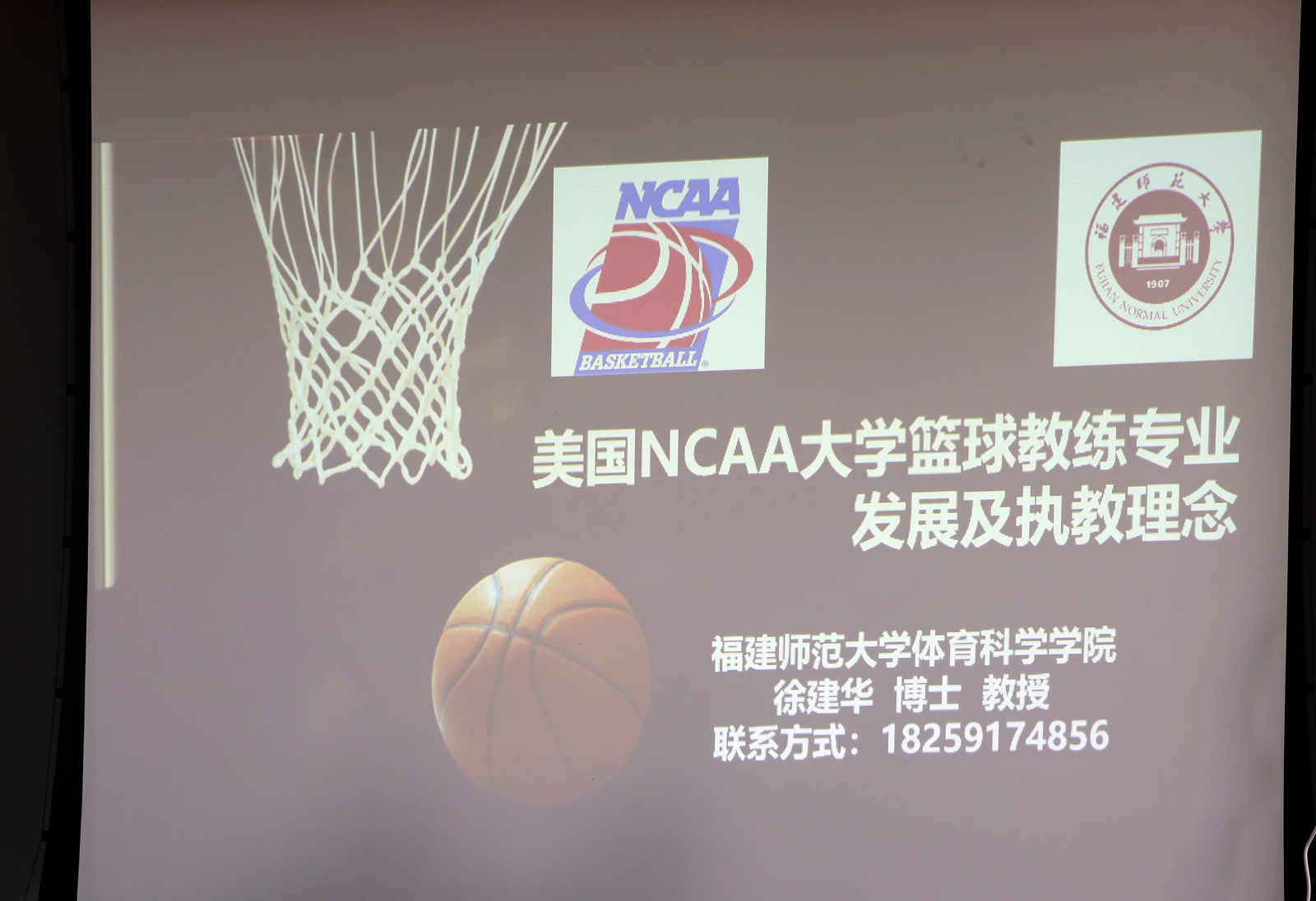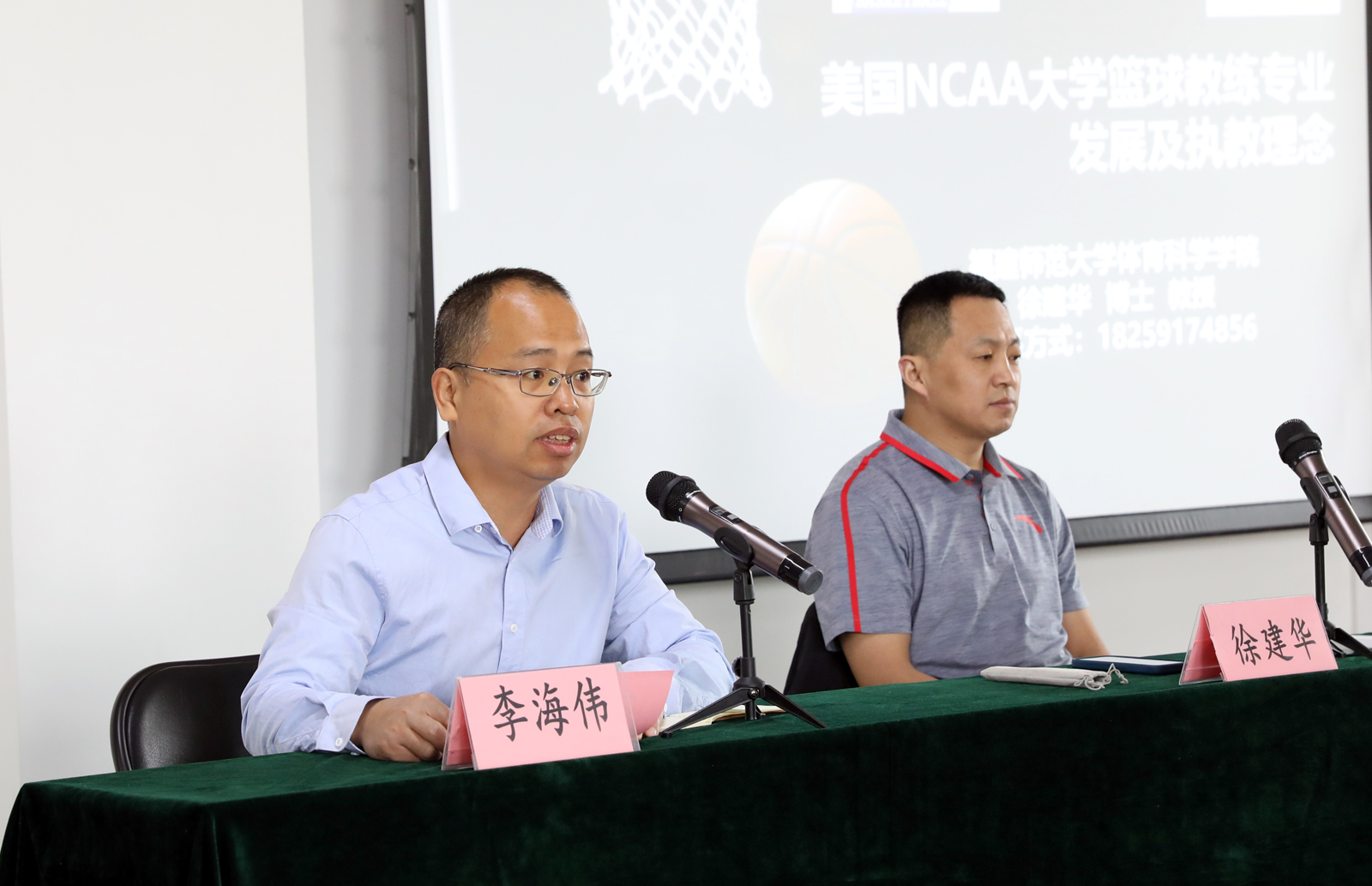 5月21 日上午,福建师范大学徐建华教授应邀为公司师生做了题为《美国NCAA大学篮球教练专业化发展及执教理念》的学术报告,报告会由副经理李海伟教授主持,部分教师和全体研究生聆听了报告。