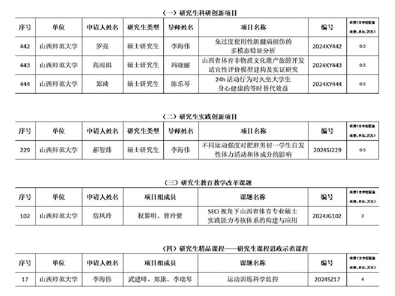 近日,山西省教育厅公布了2024年度研究生教育创新计划各类项目名单(晋教研〔2024〕1号)。公司共获批6个项目,涵盖了精品课程、公司产品改革、科研创新和实践创新等多个领域。