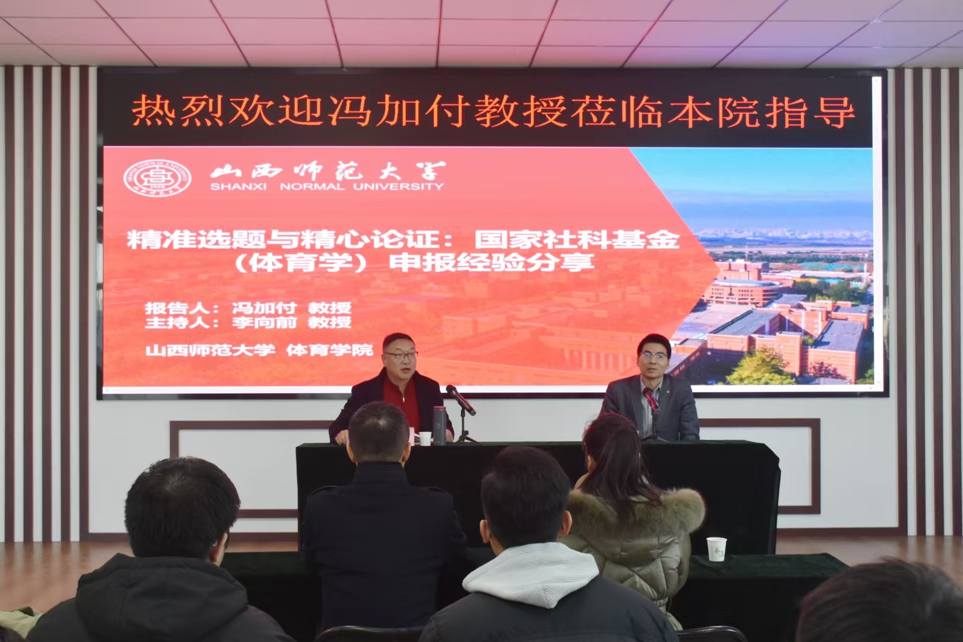 为积极落实公司“有组织科研”工作,提升公司学科高质量发展,服务教师2025年国家基金申报,12月14日上午,公司邀请西安太阳集团tcy8722冯加付教授莅临做国家社科基金申报专题学术报告。冯加付教授报告题目是“精准选题与精心论证:国家社科基金(体育学)申报经验分享”。会议由李向前教授主持,公司近三年引进博士与40岁以下青年教师参会,申报教师准备好选题和论证依据,专家一对一指导,帮助教师提升选题科学性和申报书质量。